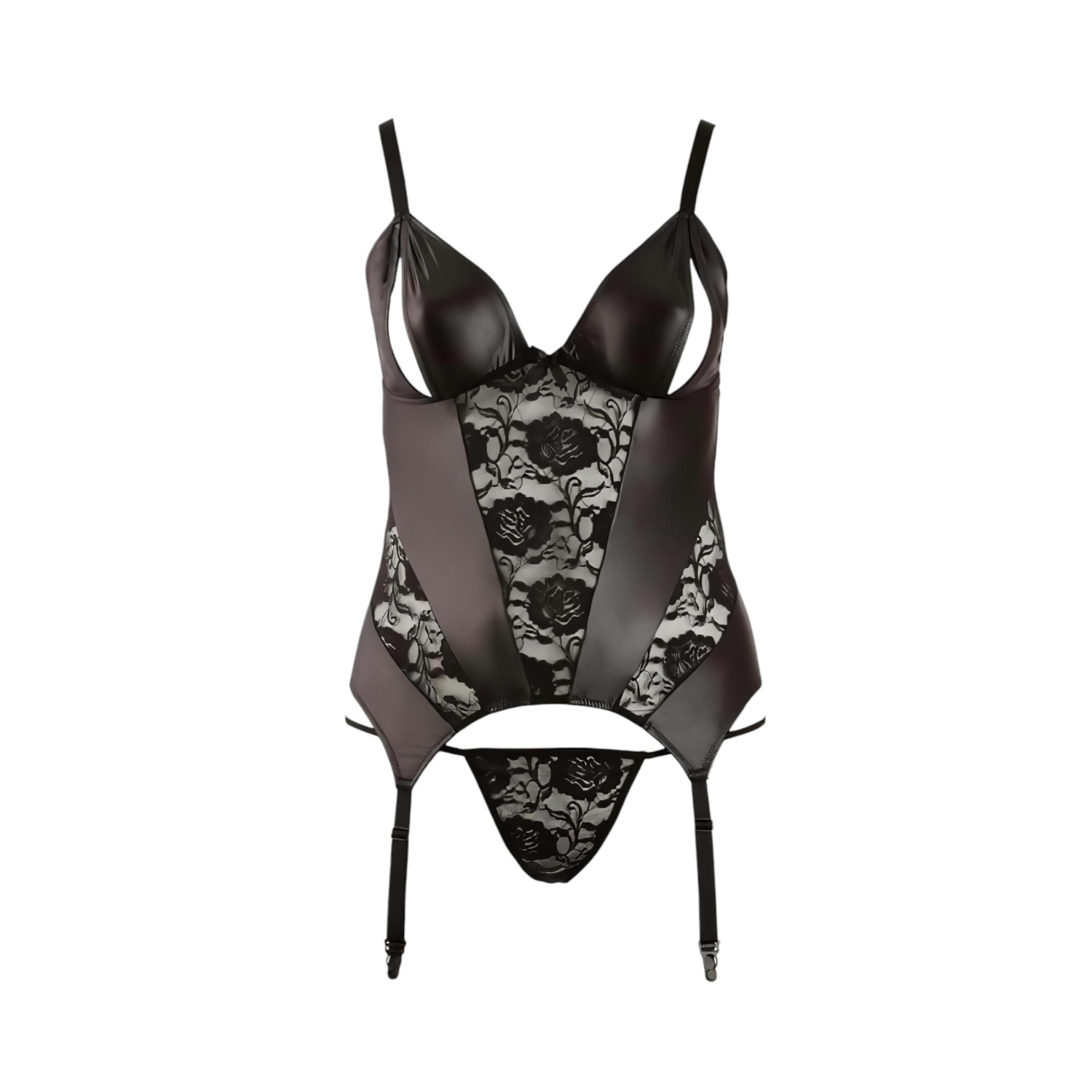 Descubre la combinación perfecta de sensualidad y estilo con este top con liguero súper sexy: su tejido brillante efecto mojado y los delicados detalles de encaje hacen que realmente impresione.