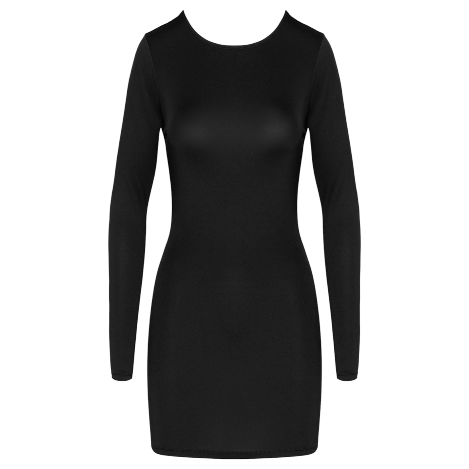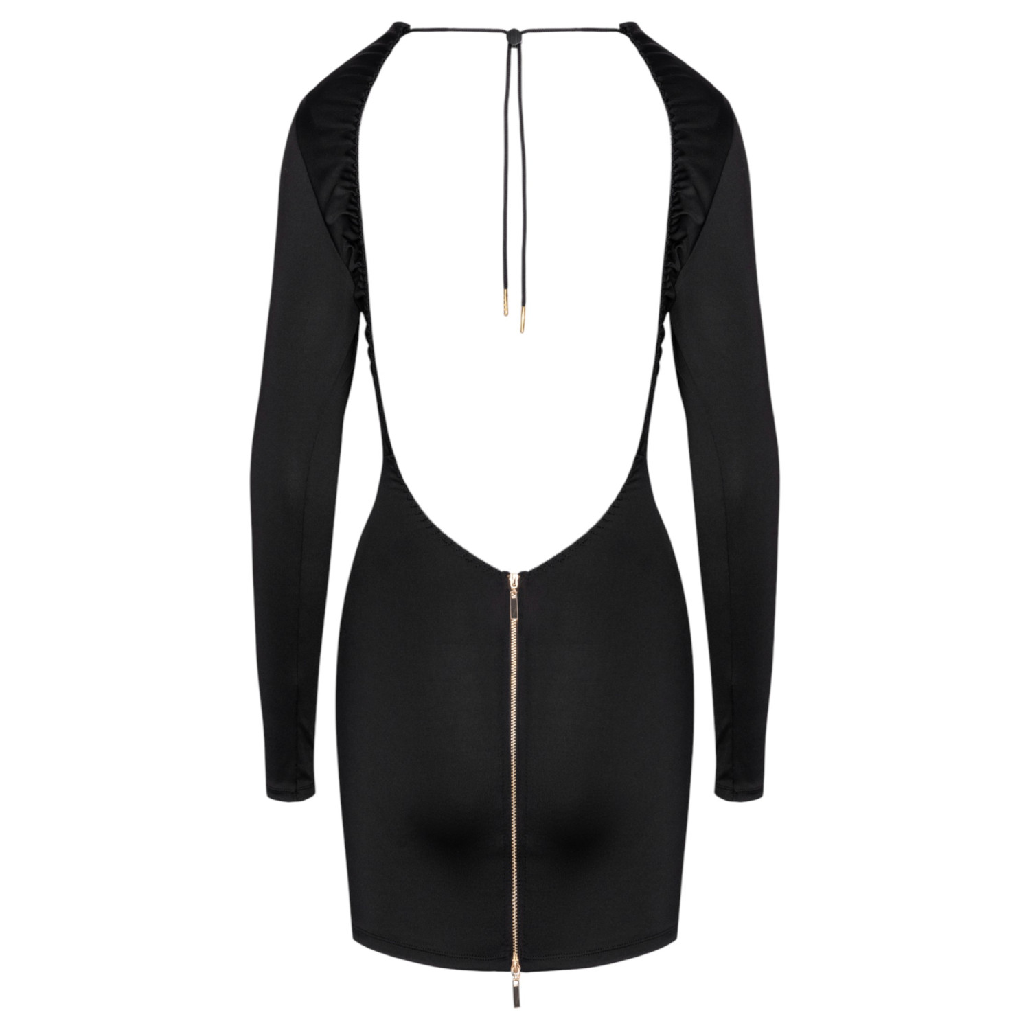 El minivestido negro de manga larga Cottelli Party es elegante y provocativo a la vez: sobrio por delante y realmente impresionante por detrás.