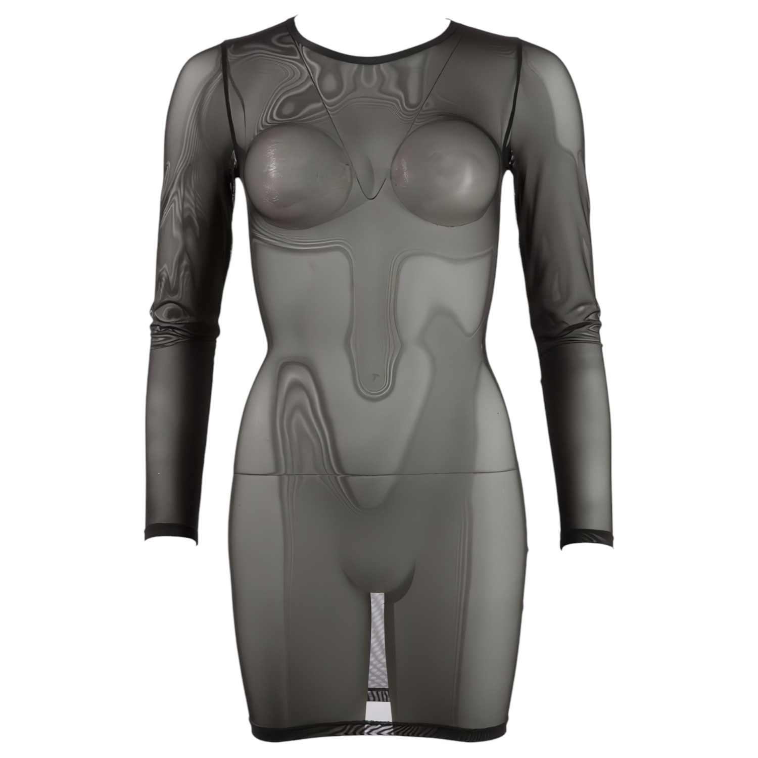 Minivestido completamente transparente que sigue cada curva de tu cuerpo.