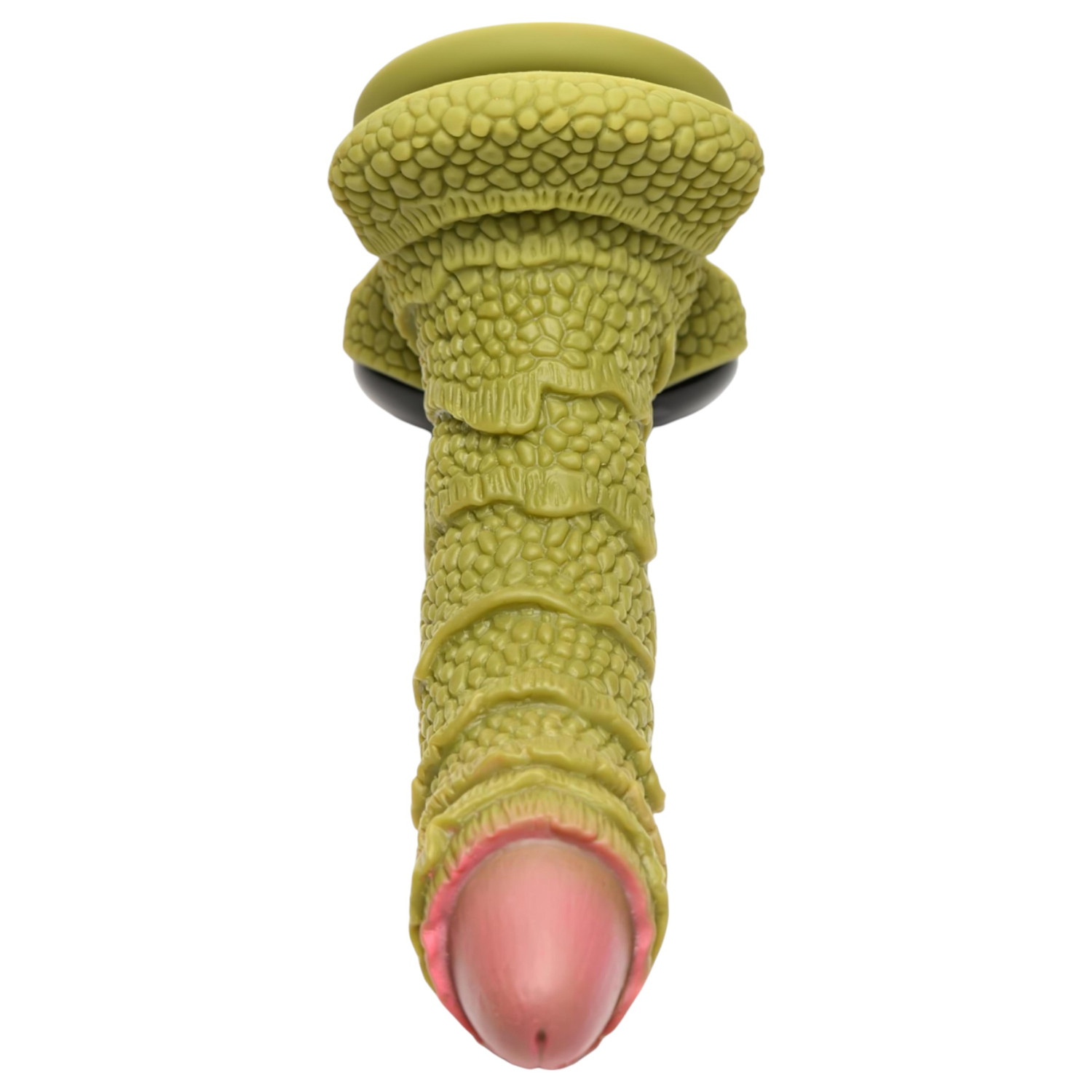 • Forma extrema y única: superficie segmentada y con textura que recuerda a la piel de dragón y grandes ojos de plástico negros. ¡Glande rosado realista!