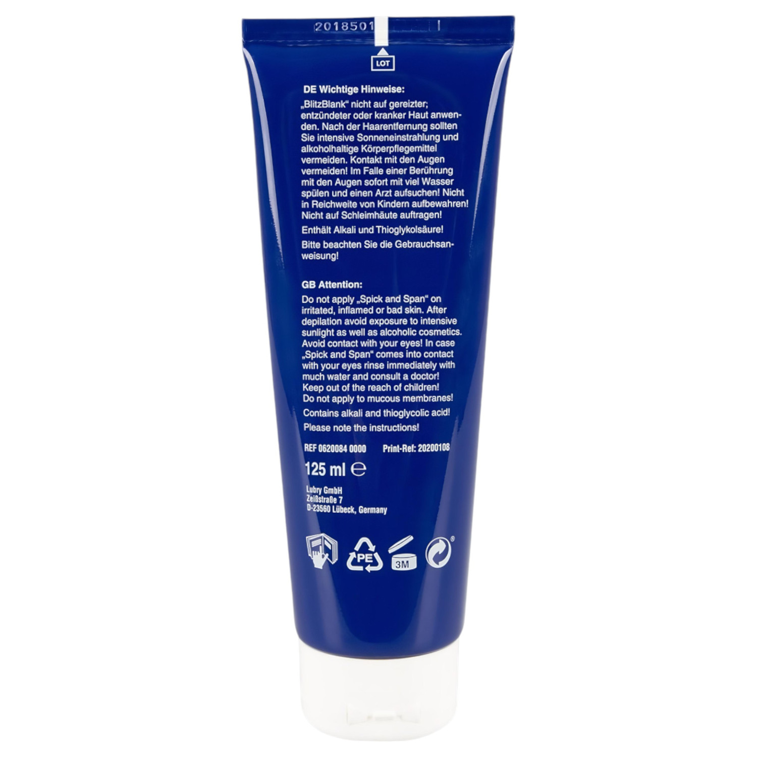 Aplica la crema en una capa uniforme sobre la zona deseada. Déjala actuar el tiempo indicado en el envase, luego usa la espátula incluída para quitar la crema y el vello con cuidado. Enjuaga bien con agua tibia.
