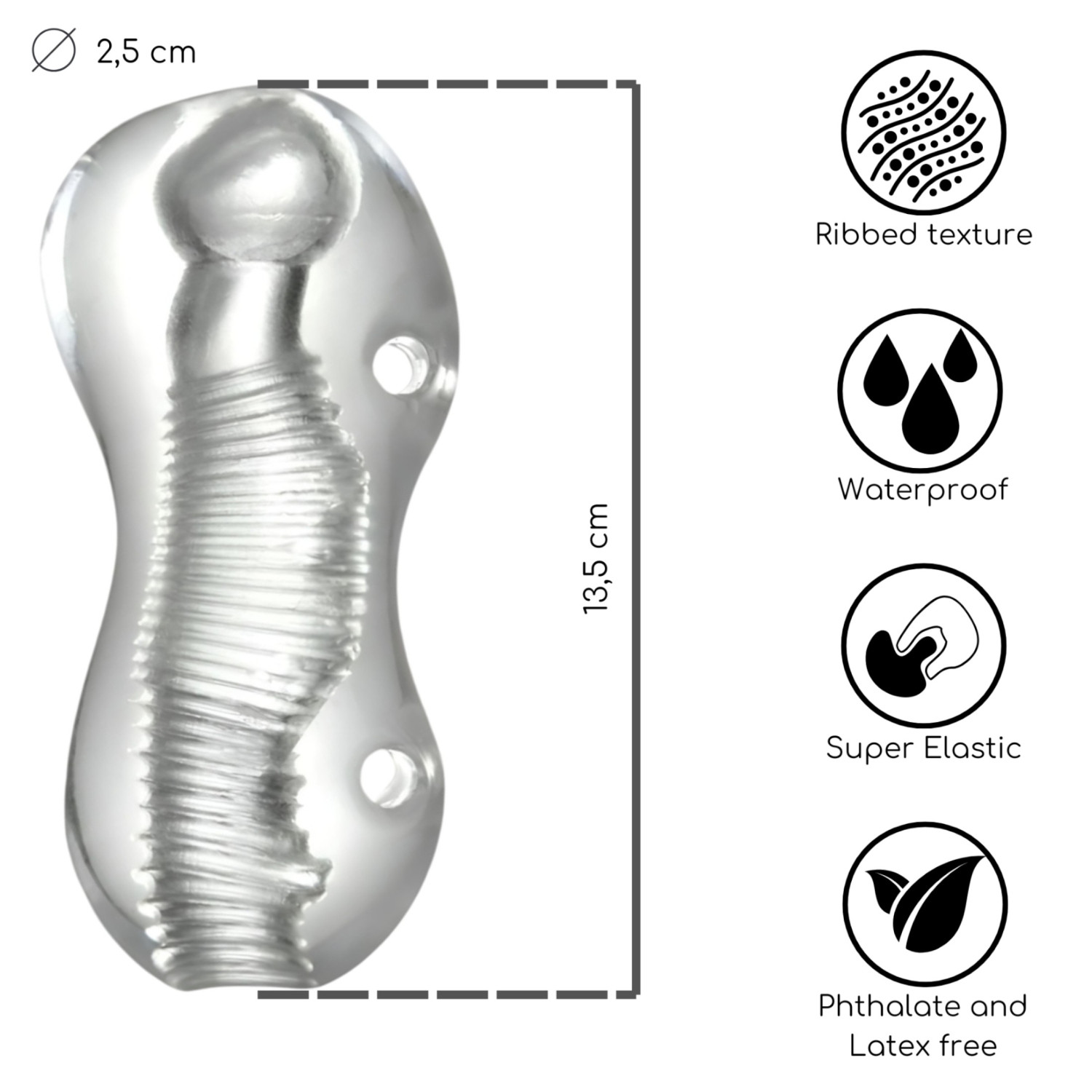 • Superficie interna acanalada - estimula intensamente el miembro mientras desliza dentro y fuera