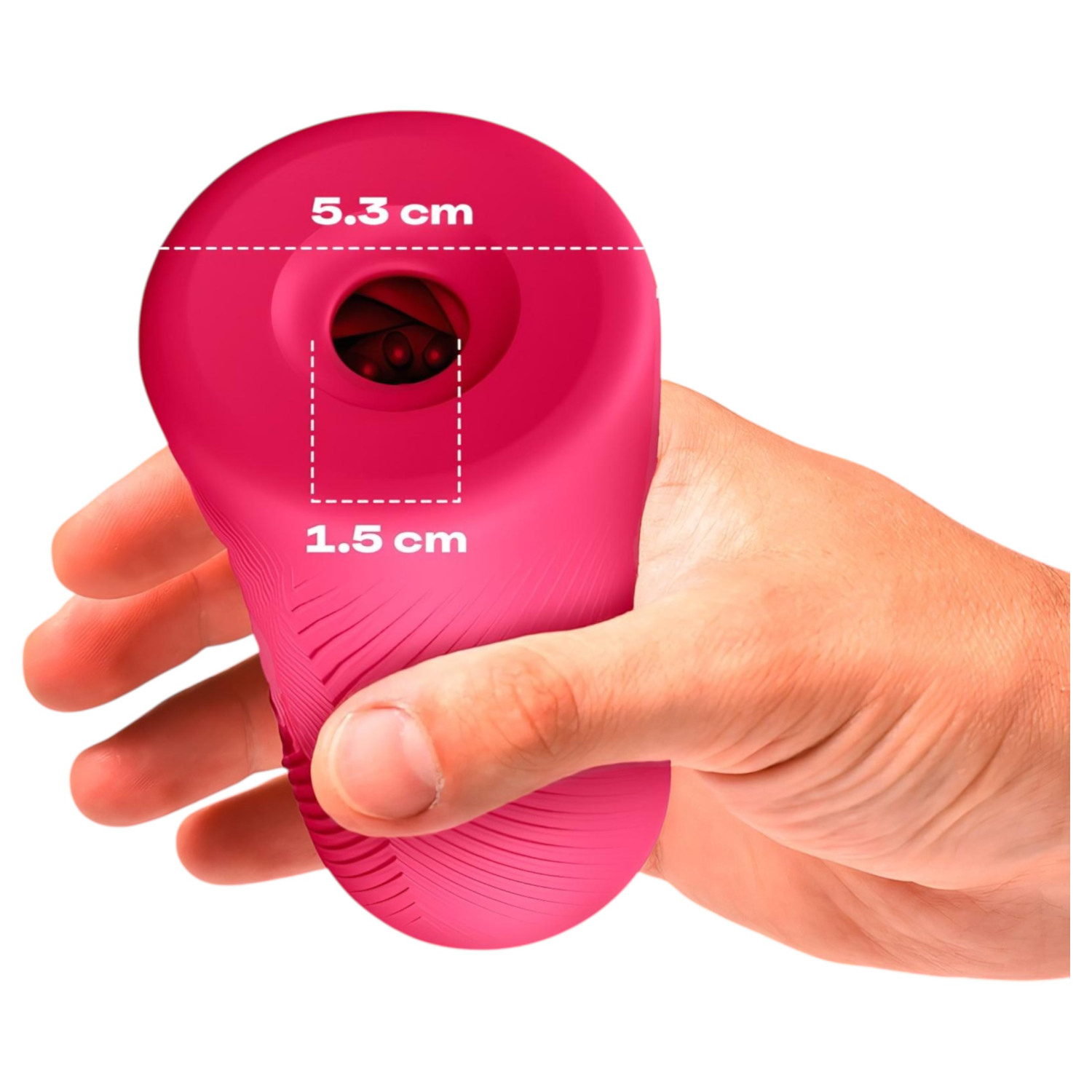 Aplica una generosa cantidad de lubricante a base de agua en el pene y en el interior del masturbador, luego introduce tu pene y mueve tu mano hacia adelante y hacia atrás. Puedes intensificar la experiencia al apretar el suave canal con diferentes fuerzas. Puedes usarlo solo o con la ayuda de tu pareja durante el placer manual.