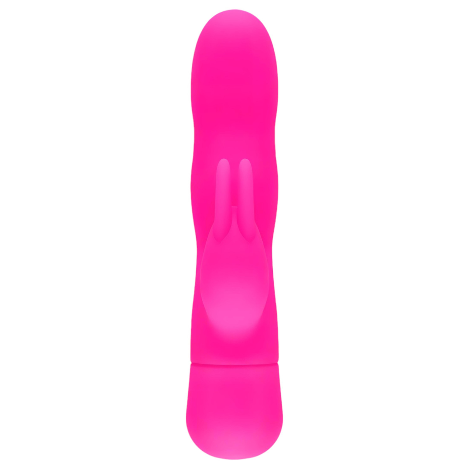 Vibrador con estimulador de clítoris en forma de conejito, con diseño que se adapta perfectamente al cuerpo y un acabado ultrasuave.