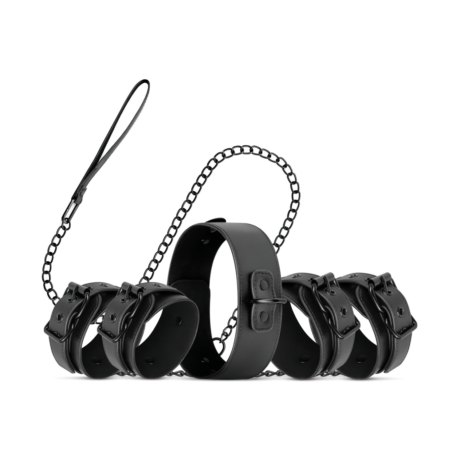 • Se puede usar de muchas formas distintas: incluye esposas para muñecas y tobillos, y el imprescindible collar