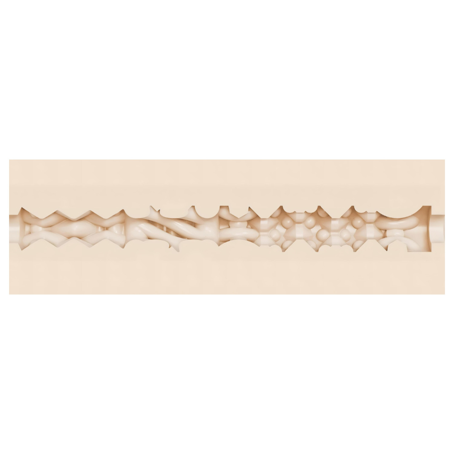 • Siente cómo los pliegues y estrías recorren tu pene, o deja que los relieves de masaje te sorprendan con sensaciones únicas