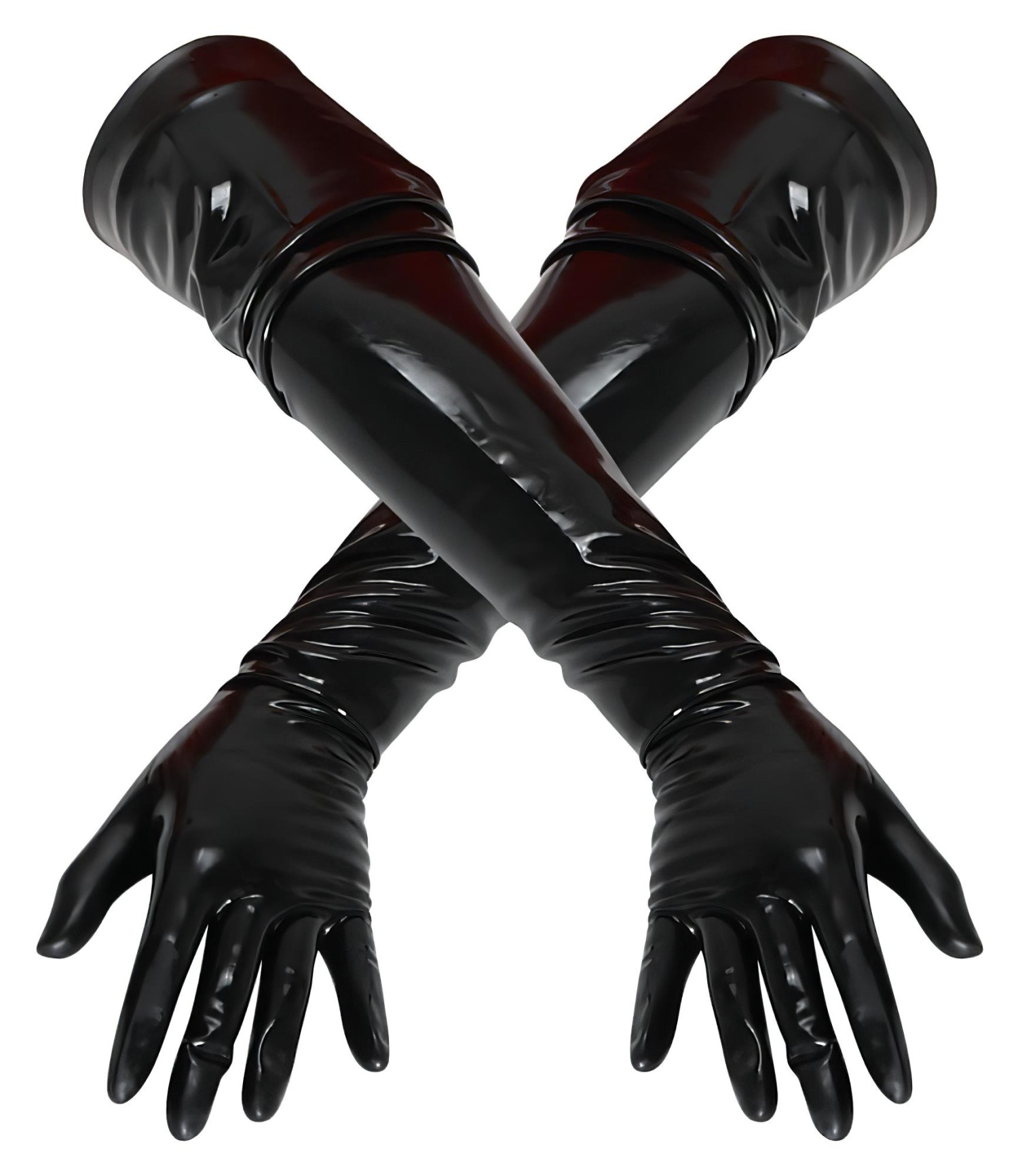 ¡Lleva tu look fetish al siguiente nivel con estos clásicos guantes de latex negros y largos - para mujeres y hombres por igual!