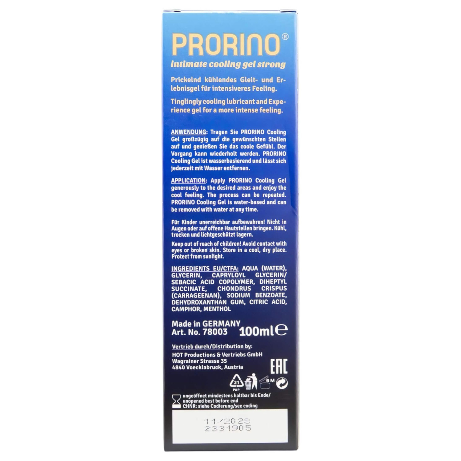 HOT Prorino - Intensa crema refrescante íntima para hombres (100ml)