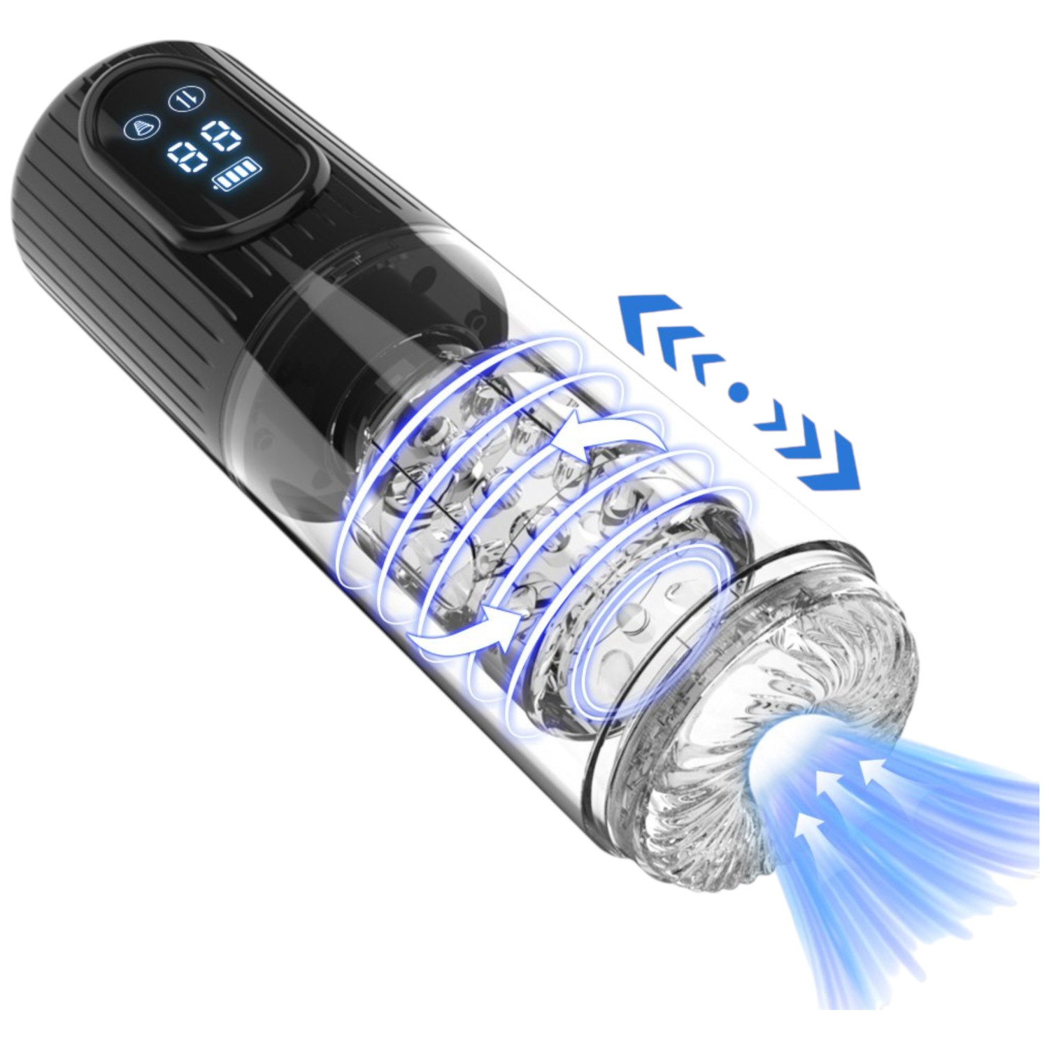 Experimenta un nuevo nivel de placer con el Men's Play - masturbador giratorio, succionador y vibrador, ¡que te llevará al clímax con cada movimiento!