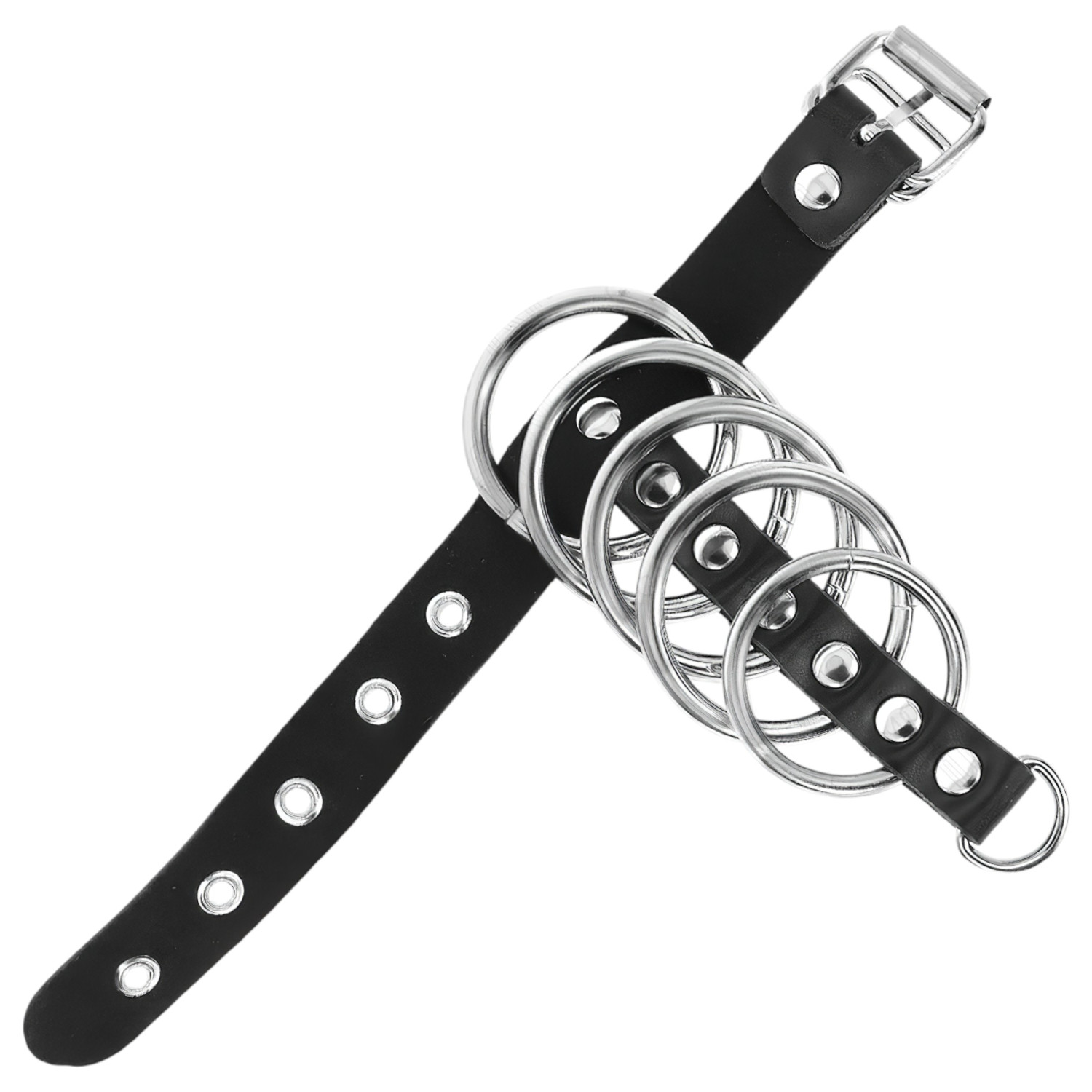 Experimenta la combinación de control, estilo y máximo placer con el anillo para el pene Kink con anillos de metal, que ofrece variada estimulación con correa de cuero y anillos de metal de diferentes tamaños.