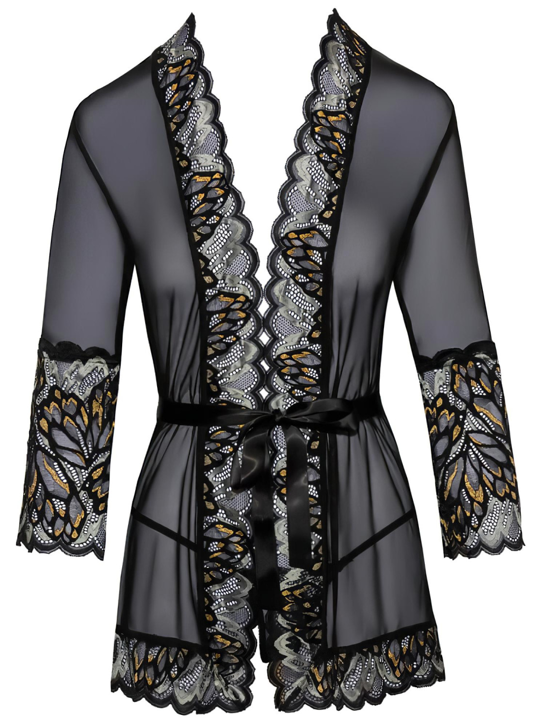Kissable - bata corta con lazo (negro)¡Kimono corto con un toque exclusivo!