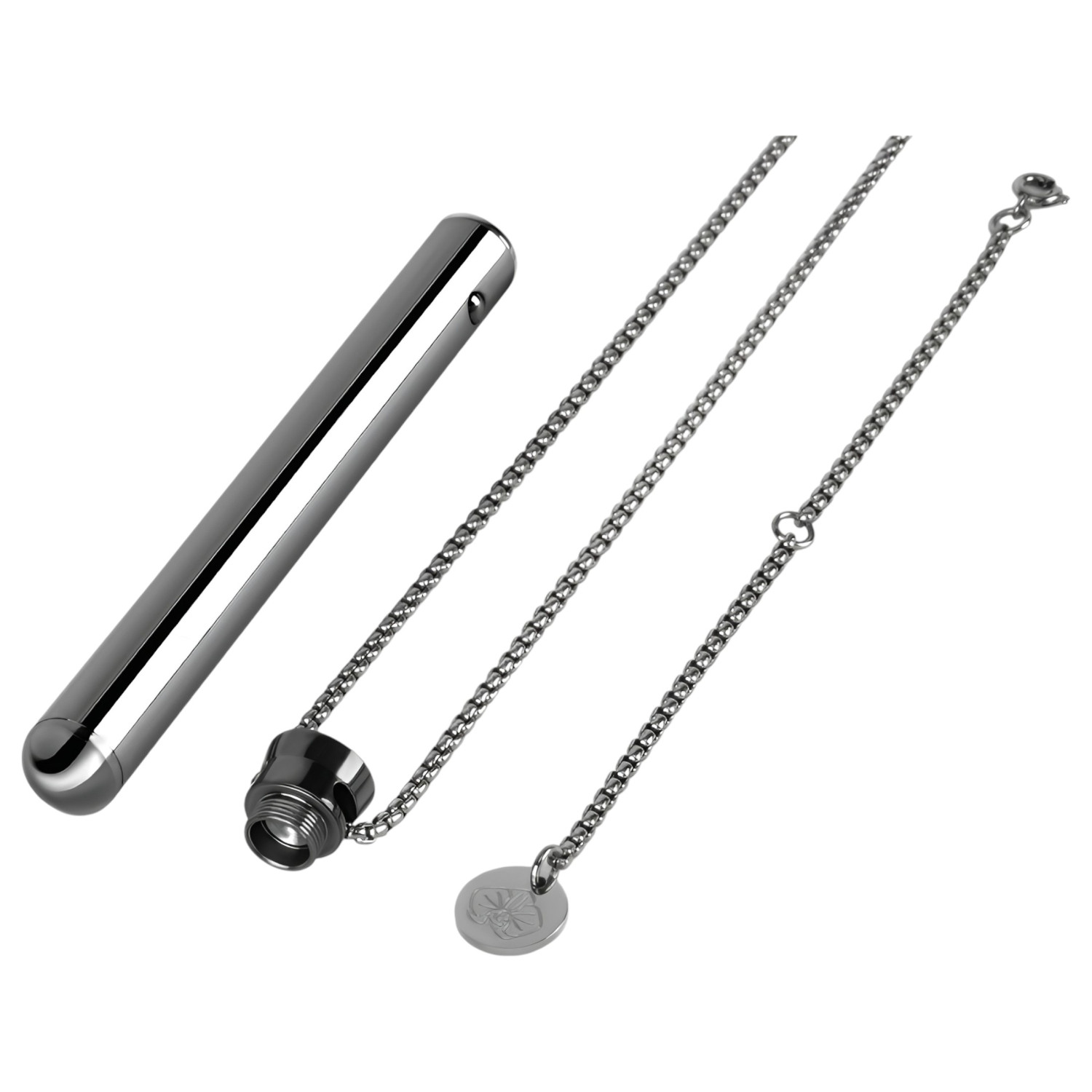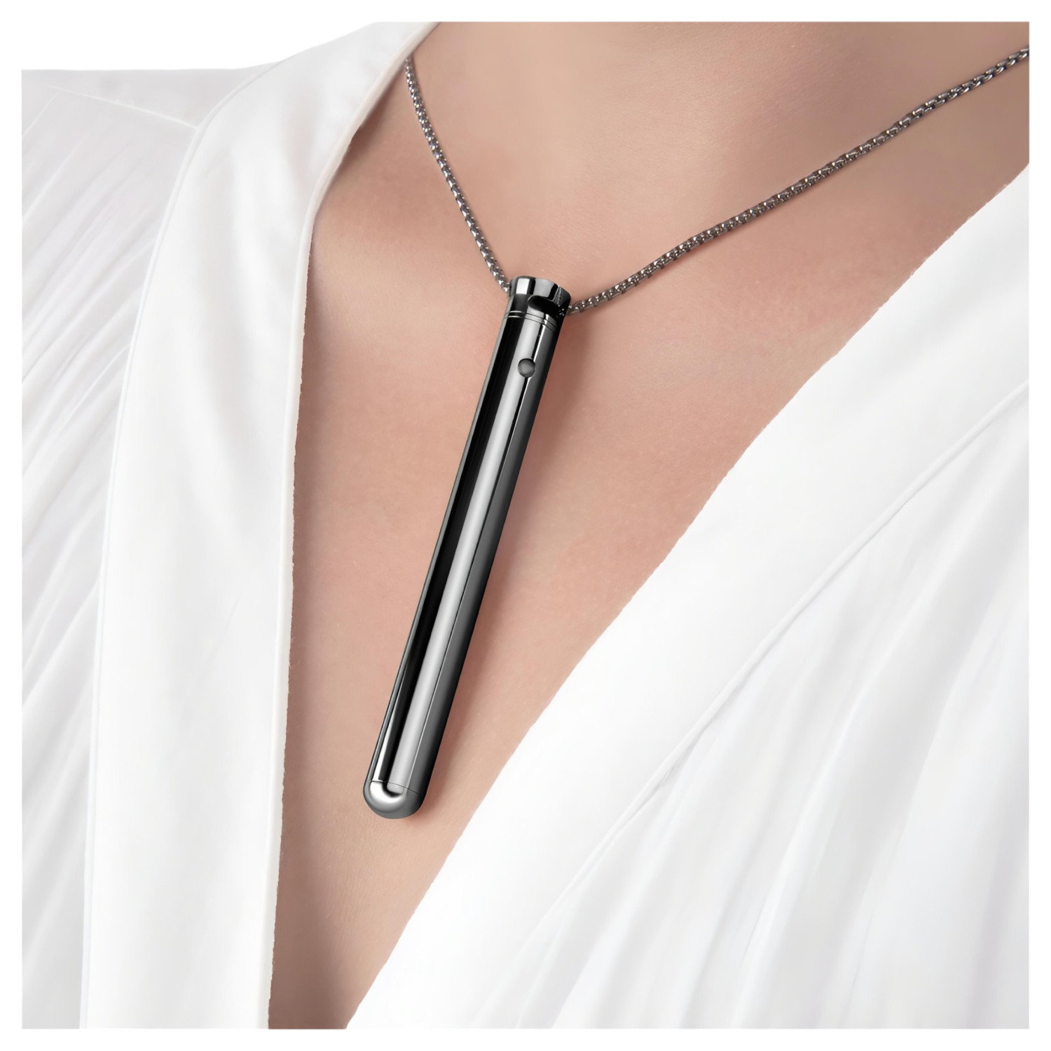 Este hermoso vibrador con forma de colgante combina dos funciones: se puede usar como un discreto accesorio y al mismo tiempo ofrece una estimulación íntima rápida, para que el placer esté siempre al alcance, con estilo y comodidad.