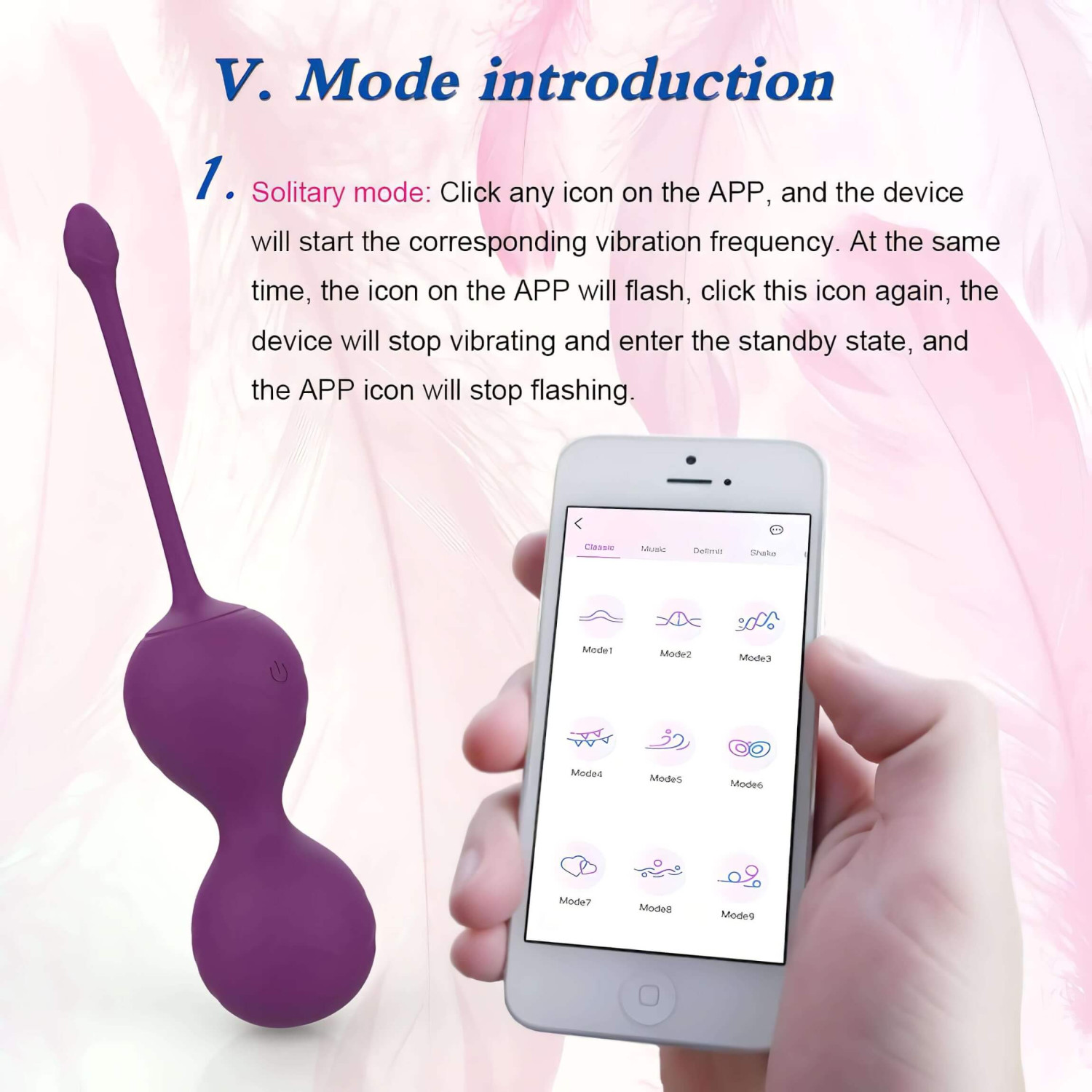 • Al emparejarlo aparecen más modos de vibración: clásico (más patrones con 9 frecuencias distintas); musical (la vibración va al ritmo de la música que pongas en tu móvil); delimit (puedes cambiar la vibración moviendo el dedo por la pantalla); shake (agita el móvil para cambiar el ritmo); friend (puedes dar el control a tu pareja para que lo maneje desde la app, incluso a distancia).