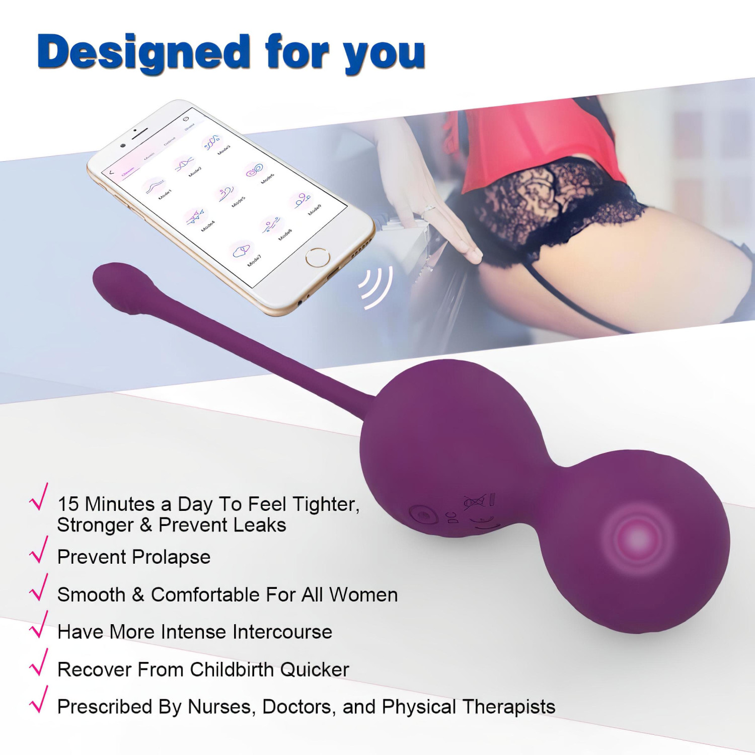 Potente huevo vibrador de doble diseño, con práctico cordón para extraer y control por aplicación. ¡Los patrones de vibración variados no solo te dan placer intenso, sino que también estimulan tus músculos!