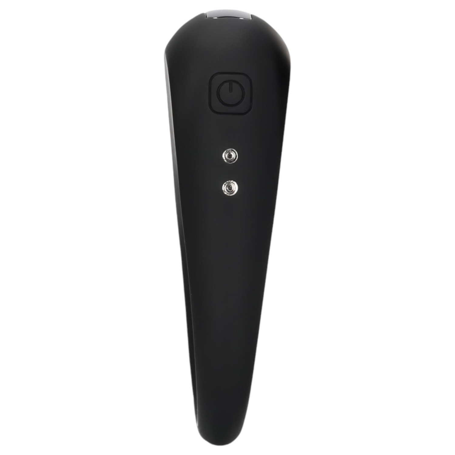 La parte vibradora estimula el clítoris si se pone hacia arriba, o los testículos y el perineo si se pone hacia abajo.