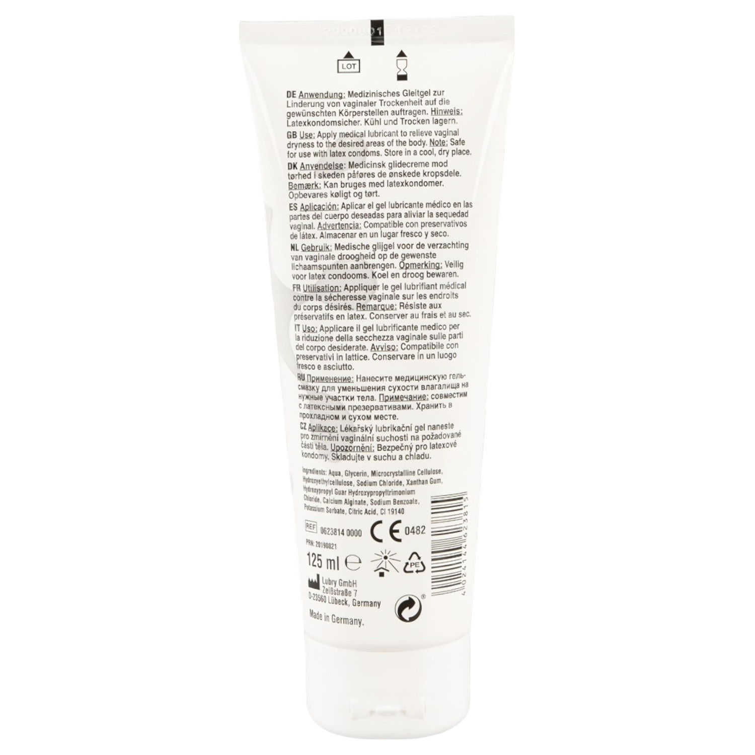 Ingredientes: Aqua, Glicerina, Celulosa Microcristalina, Hidroxietilcelulosa, Cloruro de Sodio, Goma Xantana, Hidroxipropil Guar Hidroxipropiltrimonio Cloruro, Alginato de Calcio, Benzoato de Sodio, Sorbato de Potasio, Ácido Cítrico, CI 19140