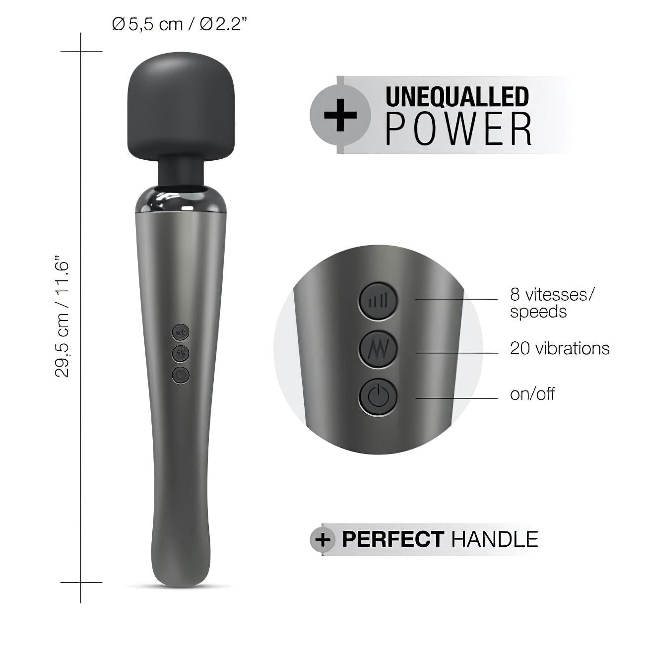 ¡Tamaño imponente, soluciones premium y potencia extra! Así se define este vibrador masajeador.