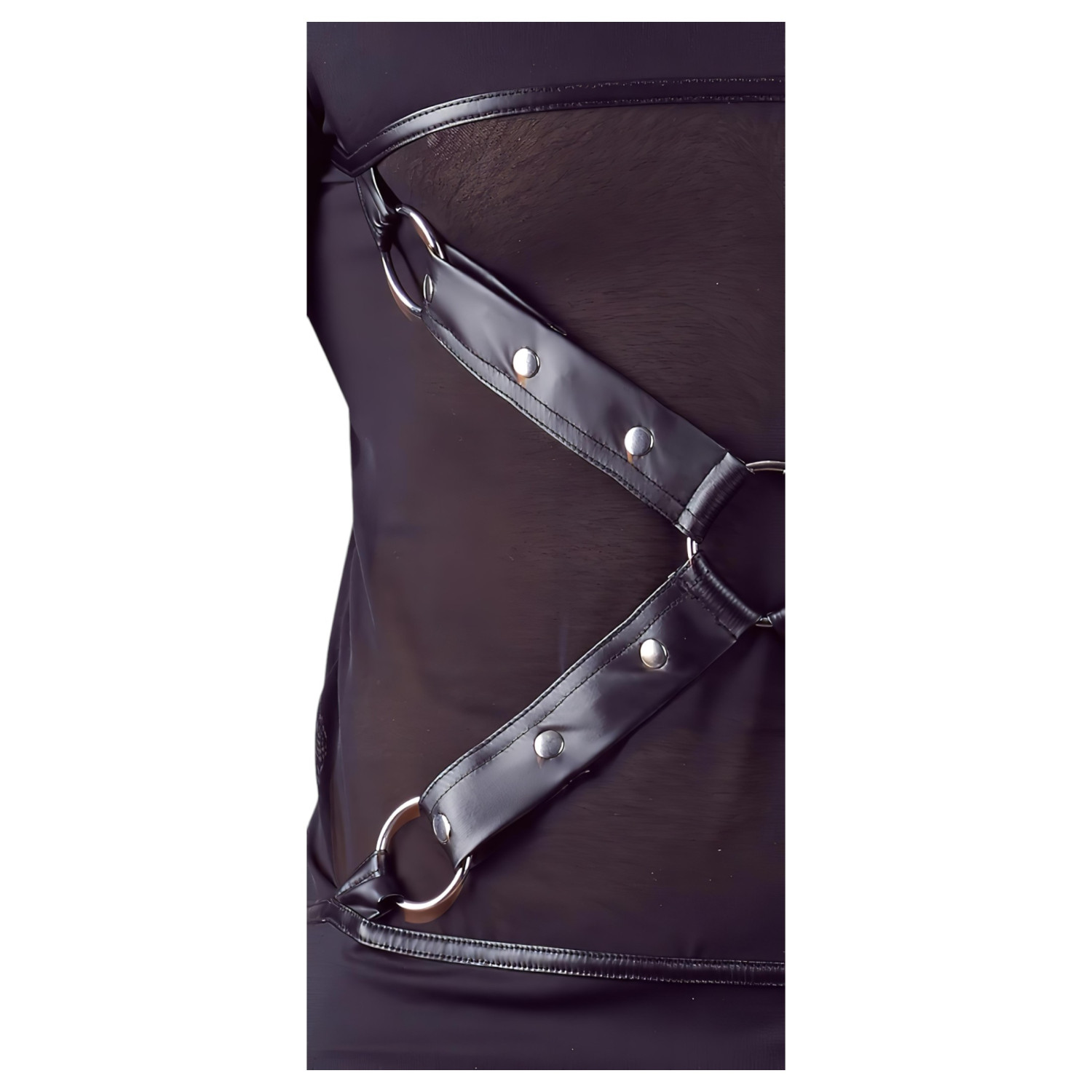 • Anilla metálica en el abdomen con tiras desmontables - perfecta para juegos BDSM