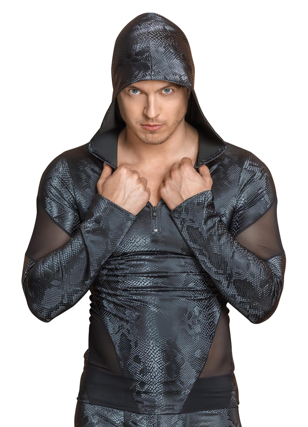 Sudadera con capucha súper sexy de tejido efecto piel de serpiente - con inserciones de red translúcida para un look rompedor!