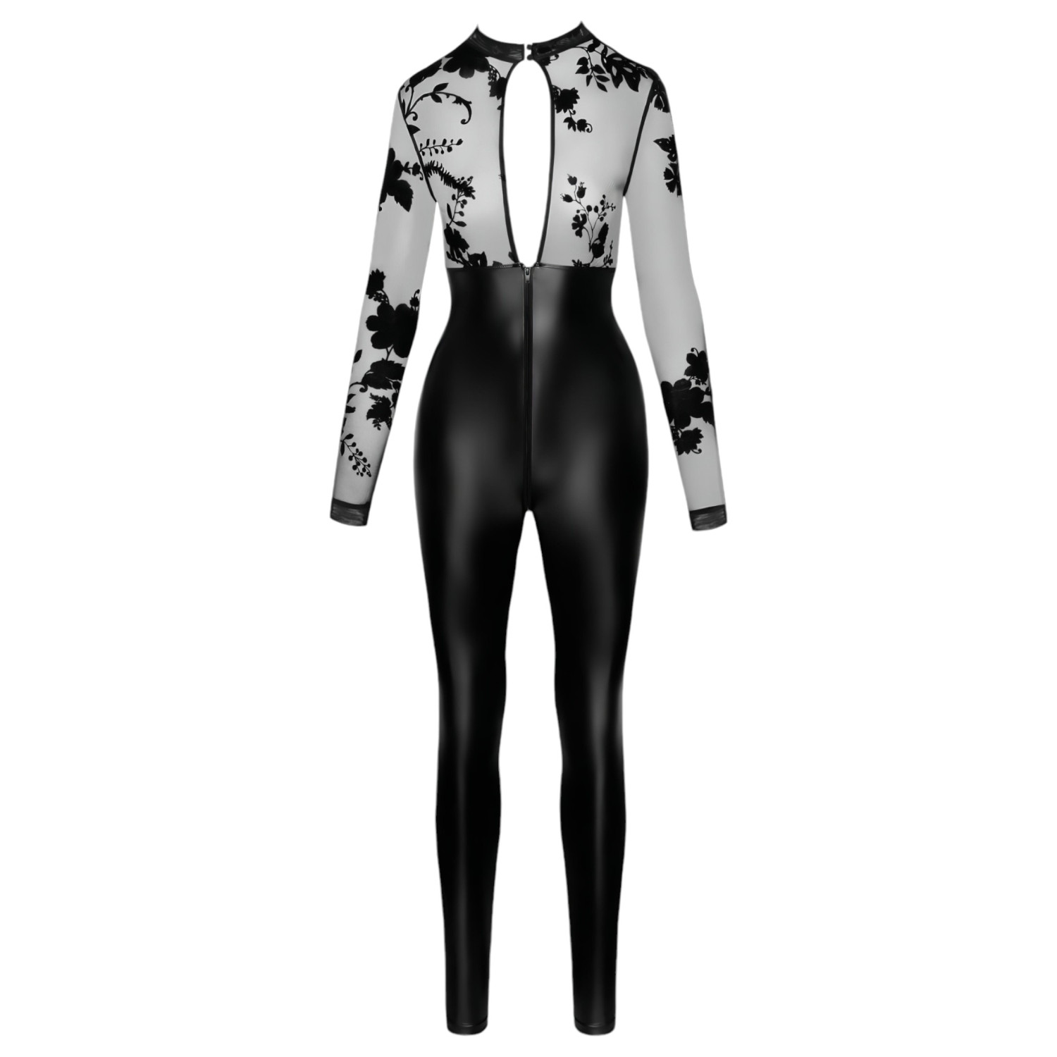 ¡Un mono brillante con escote profundo y una parte superior transparente con un especial estampado floral, que expresa dominancia sin decir una palabra!