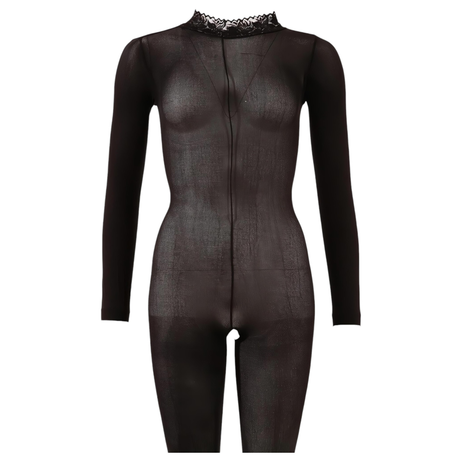 • Catsuit negro de manga larga, tejido ligeramente translúcido