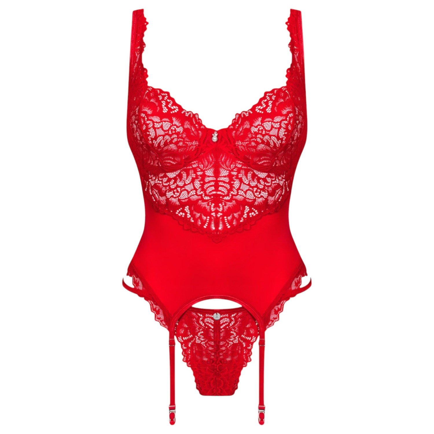 El conjunto Obsessive Amor Cherris es un conjunto de lencería sensual y elegante, hecho de material elástico fino y encaje elegante.