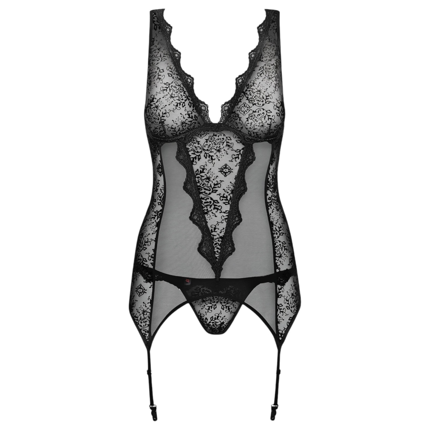 Un estilo sexy y sofisticado, tela transparente y delicados bordados aterciopelados hacen que este conjunto de liguero con top y tanga sea irresistible.¿Por qué te va a encantar?