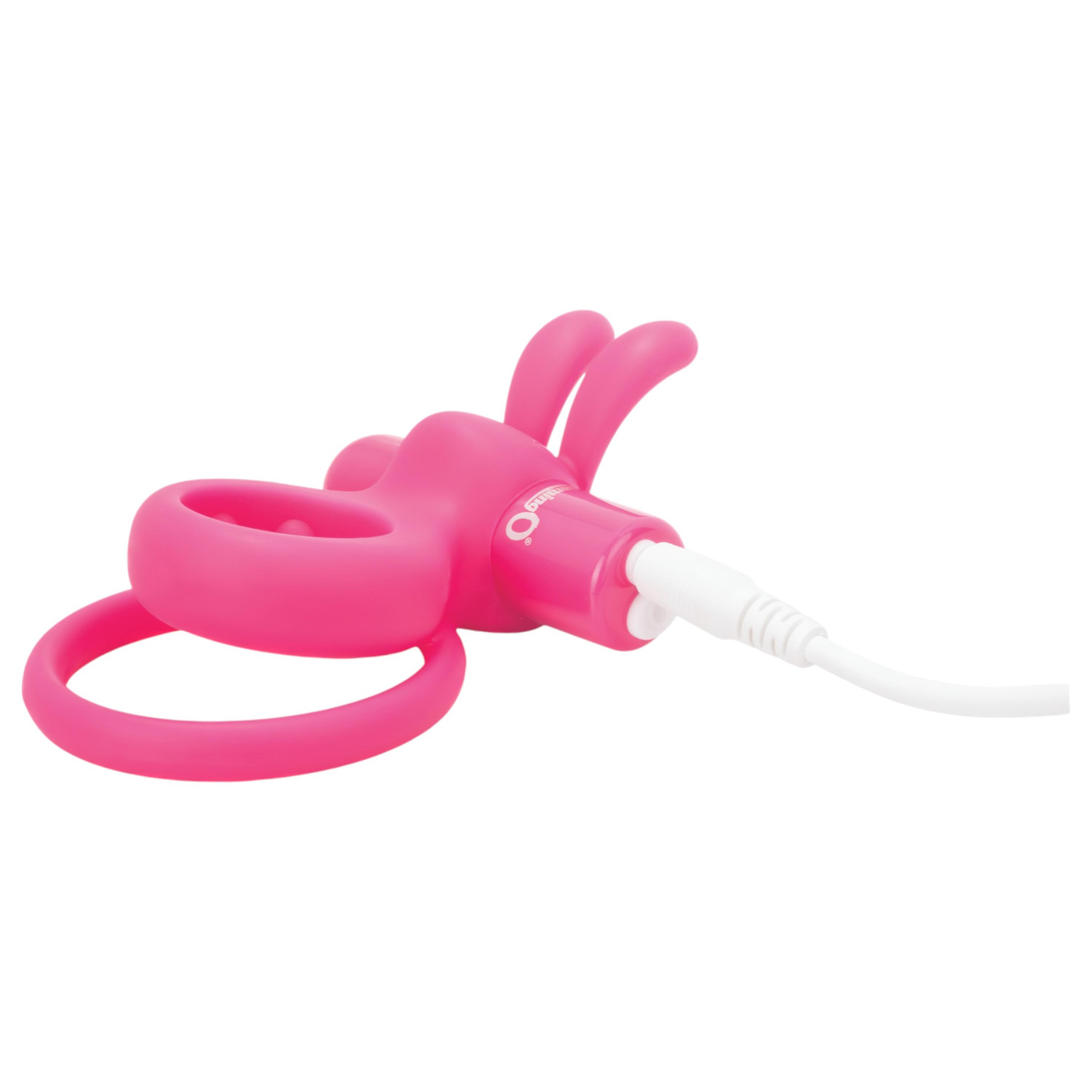 ¡Un anillo para pene y testículos todo en uno, equipado con vibración potente extra y estimulador con orejitas de conejo: cada movimiento es una nueva sensación!