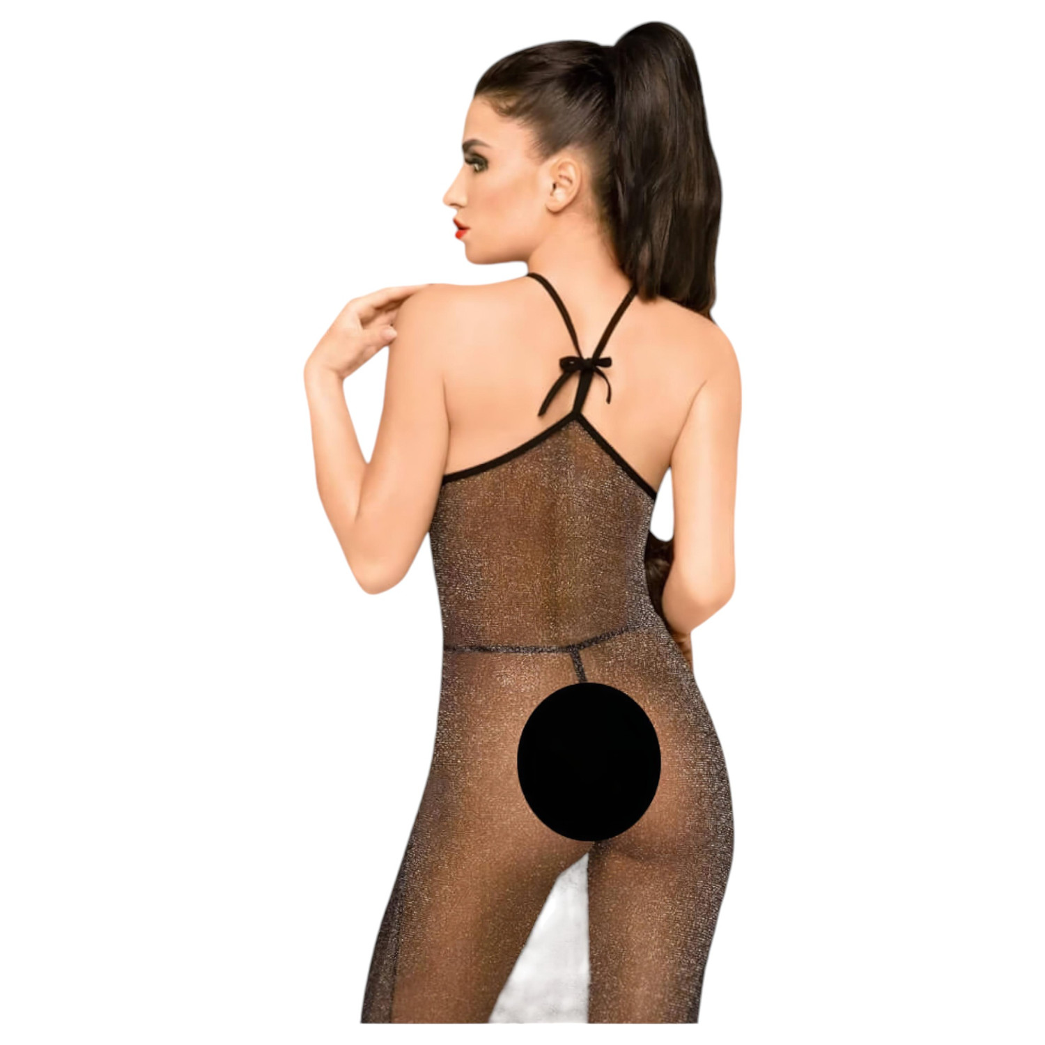 Vestido Largo Brillante Transparente con Tanga (Negro) - Penthouse Love on Fire - L/XL