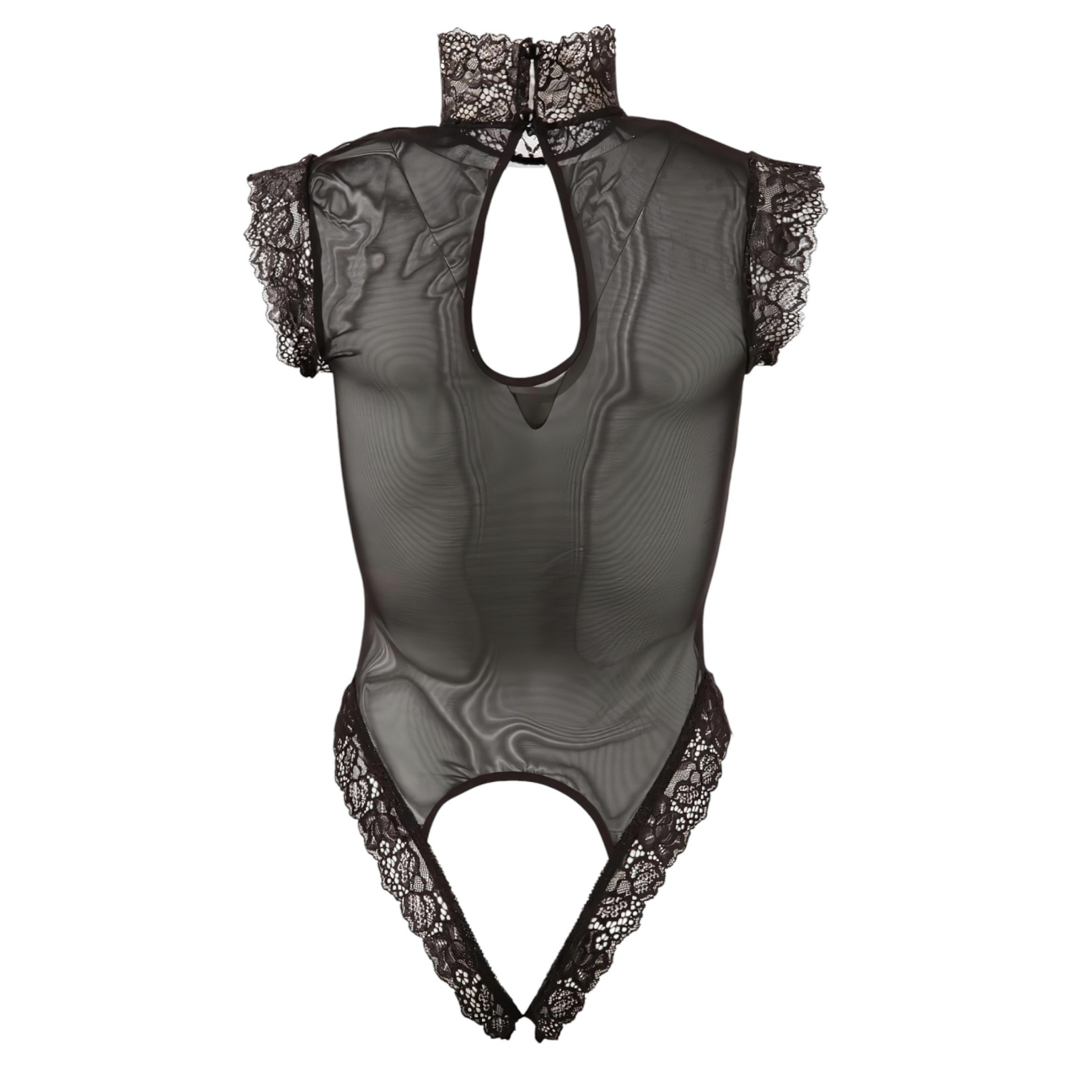 Este body abierto exclusivo es a la vez elegante y sensualmente erótico. Los detalles de encaje brindan sofisticación femenina, mientras el material transparente y los adornos de cadena desmontables aseguran una experiencia inolvidable.