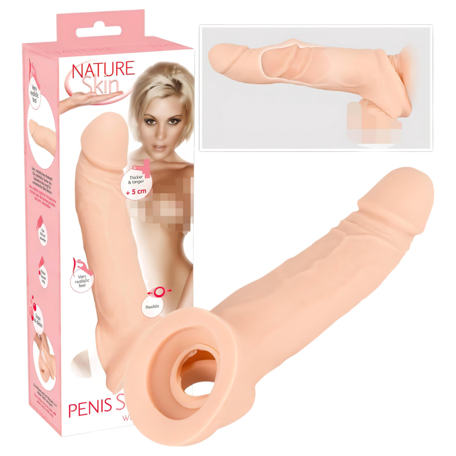 Descubre esta funda para pene súper realista, que te da 5 cm más de longitud y grosor para disfrutar aún más del placer intenso.