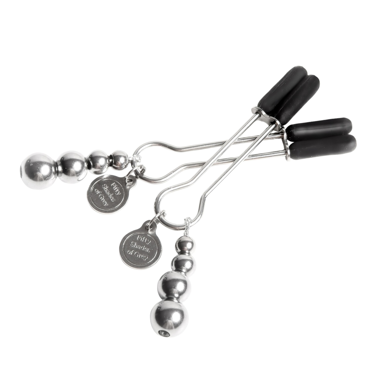 Descubre el juego entre el placer y el dolor con este set premium de pinzas para pezones de presión ajustable. Cada pinza tiene un peso de 9 gramos para una estimulación suave y gradual.