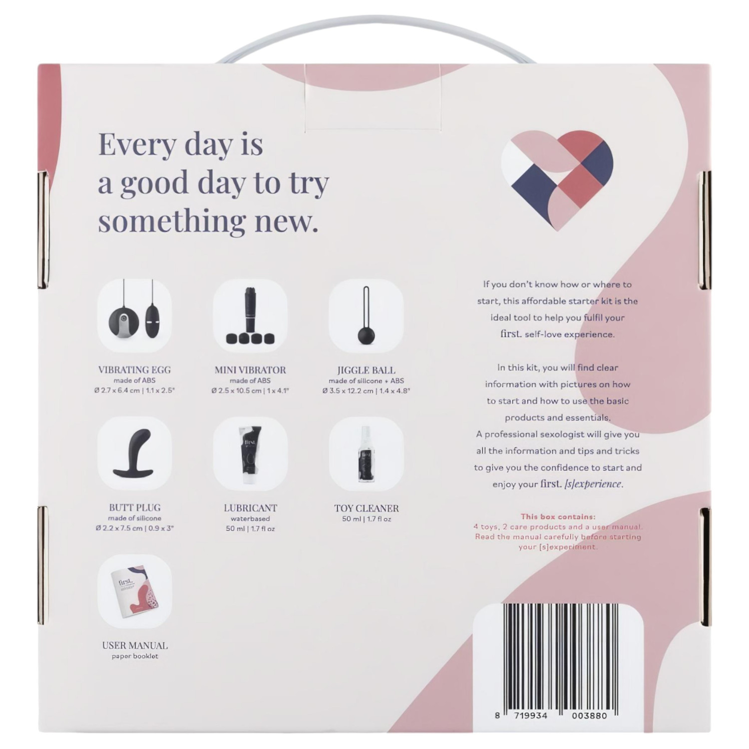 First. Self-love kit de vibradores para principiantes (6 piezas)La colección First [S]experience fue creada junto con sexólogos, pensada especialmente para quienes quieren explorar su sensualidad o la de su pareja, pero se sienten abrumados por la cantidad de vibradores y juguetes que existen. Nuestros sets para principiantes tienen todo lo que necesitas para descubrir tus deseos o los de tu pareja, todo presentado en una caja elegante.Si no sabes por dónde empezar en el mundo del placer, elige los sets First [S]experience: ¡la mejor forma de asegurarte un disfrute real!¿Por qué te va a gustar?