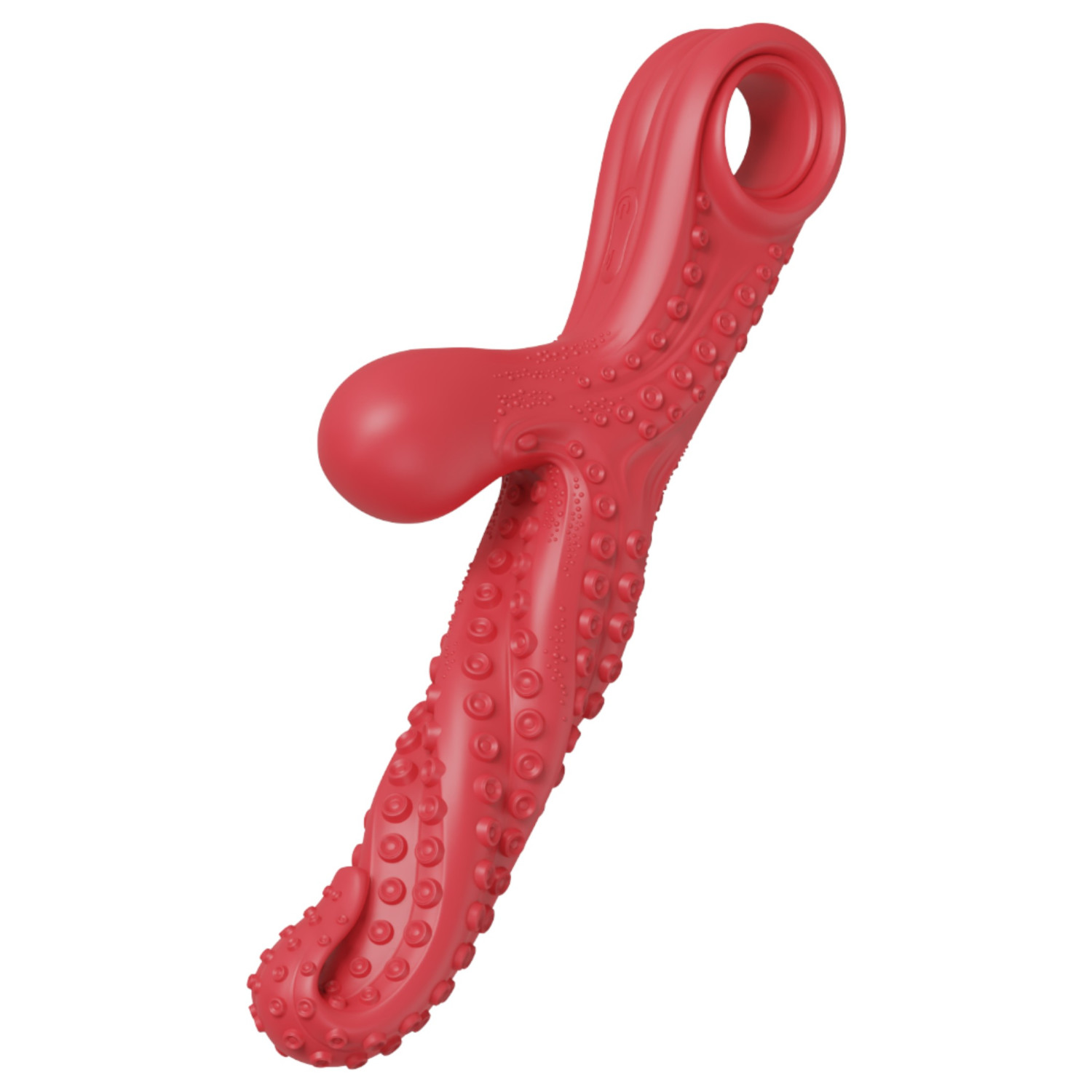 El vibrador con brazo para clítoris Octopus (rojo) con su diseño especial, estimula simultáneamente el punto G y el clítoris, proporcionando doble placer cada vez que se utiliza.
