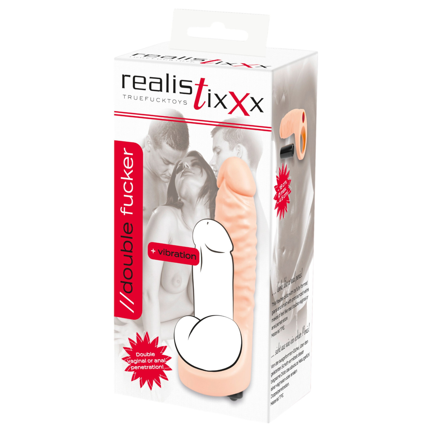 Doble placer con un solo juguete - anillo flexible para pene y testículos con dildo y función vibradora!