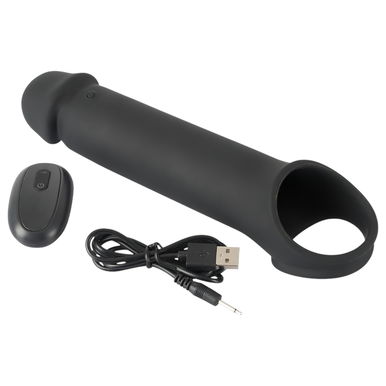 Funda para pene que te ofrece vibraciones estimulantes, hecha de material suave para la piel, diseñada para engrosar y alargar notablemente, con anillo de retención seguro para los testículos.¿Por qué mola?