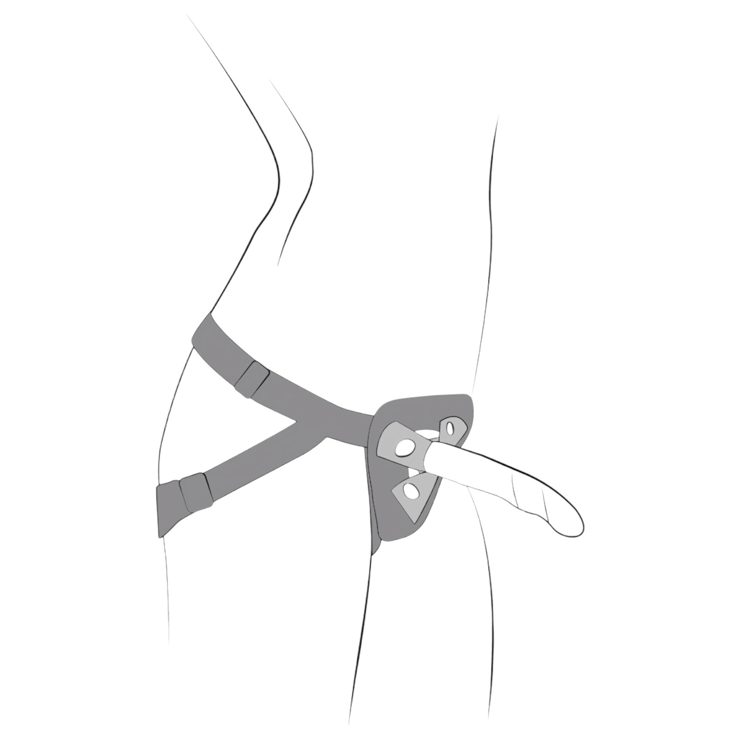 Ajusta las correas, mete el dildo en el anillo del arnés y la plataforma lo mantiene firme; así es ideal para parejas lesbianas o para experimentar con pegging.