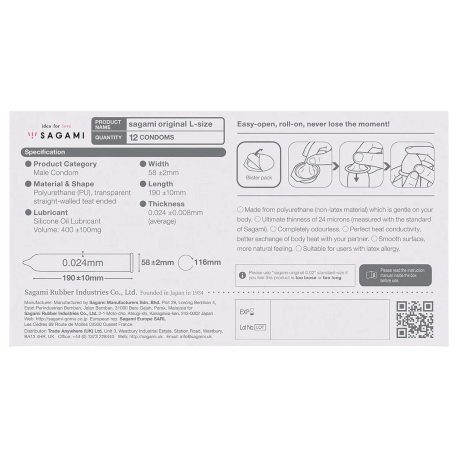 Protección premium para tamaño grande – ¡el Sagami Original L condón ofrece comodidad extra y una experiencia natural!
