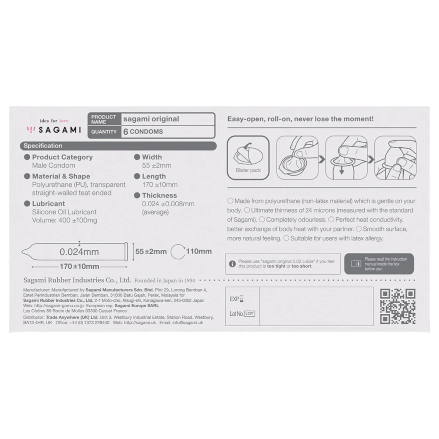 Ultradelgadez sensacional sin látex – ¡la opción perfecta con el paquete de 6 unidades de Sagami Original!