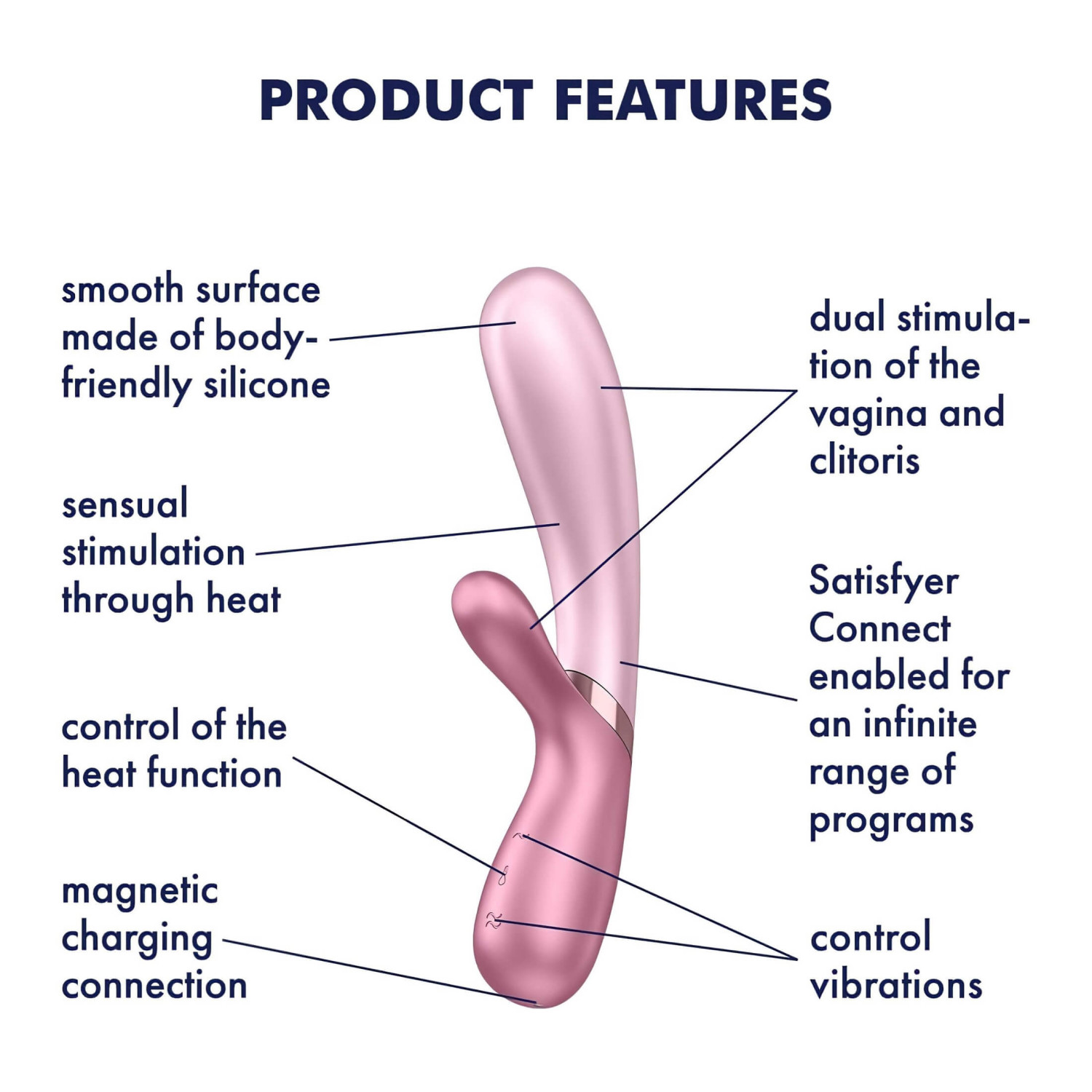Satisfyer Connect APP - control desde el móvilMantén pulsado el botón de encendido (el botón con símbolo de +) para activar el juguete y ya podrás controlarlo desde tu smartphone. Descárgate la app para expandir aún más las opciones de control.El móvil funciona como control remoto inalámbrico.Videochat - tu pareja también puede tomar el mando del juguete, controlar tu placer a distancia… ¡y además verse mientras tanto!Puedes programar las vibraciones al ritmo de tu playlist o música favorita.Creador de vibraciones - diseña patrones personalizados usando el tacto, tu voz o sonidos externos.Control si no usas la APP:El juguete trae tres botones integrados.Pulsa largo el botón con doble onda para encender o apagar las vibraciones.Pulsa una vez para cambiar entre los modos de vibración preestablecidos.Con el botón de onda simple, puedes volver a un modo anterior con solo un toque.El botón central enciende y apaga la función de calentamiento.Conexión del cable de carga: