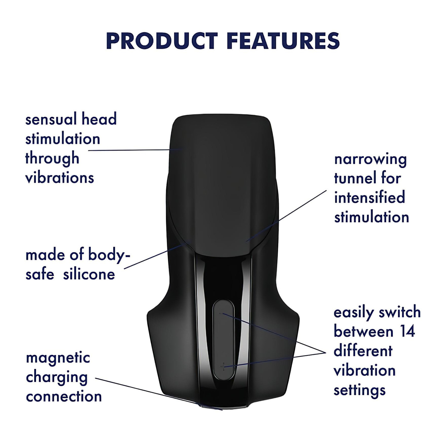 Descubre el Satisfyer Men Vibration - un vibrador de glande recargable con un diseño deportivo y elegante, dos potentes motores y un agarre ergonómico para el placer masculino.