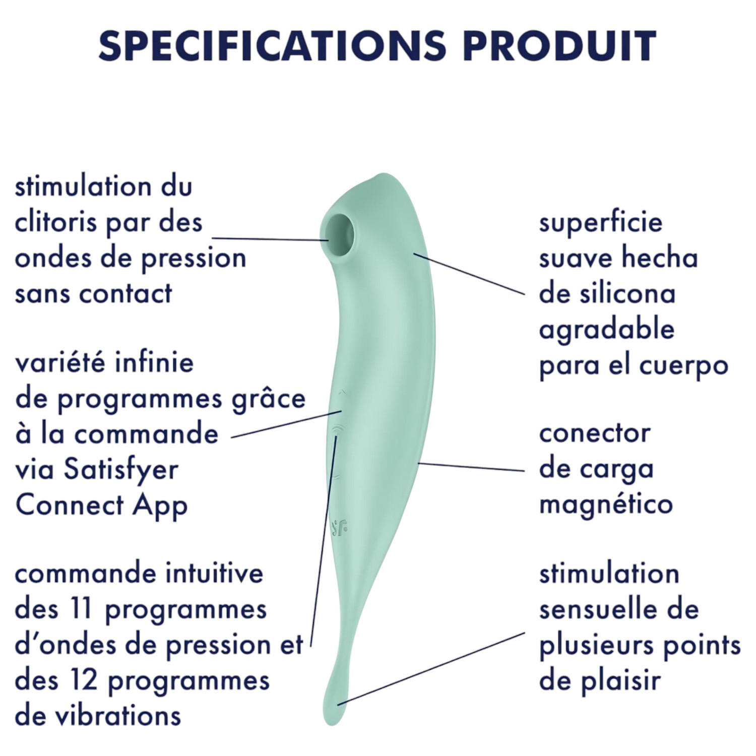 Satisfyer Twirling Pro es un vibrador innovador y multifuncional que lleva el placer a otro nivel combinando la estimulación de ondas de aire en el clítoris y vibraciones directas.