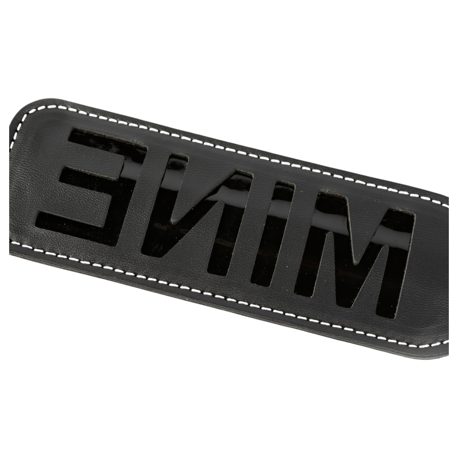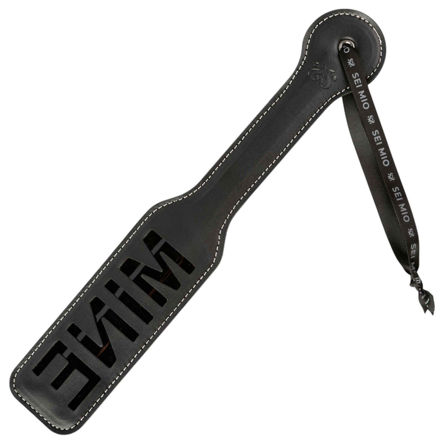 Este accesorio está diseñado para amantes de los juegos dominantes y lleva el mensaje recortado "MINE" (mío), que dejará una impresión duradera con cada golpe.