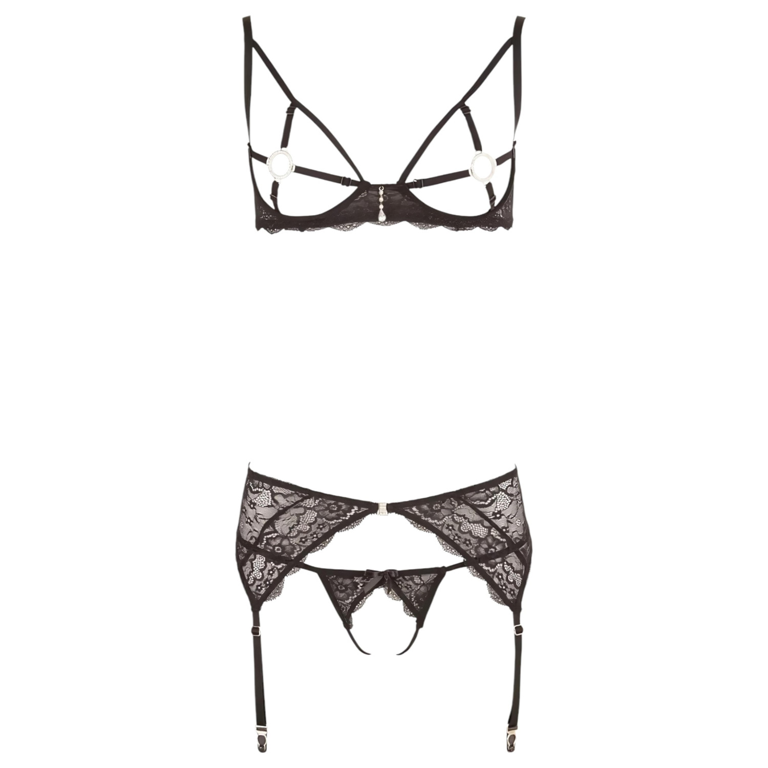 Exclusivo conjunto de lencería estilo joya de la última colección de Abierta Fina – ¡con encaje impresionante y detalles de strass!