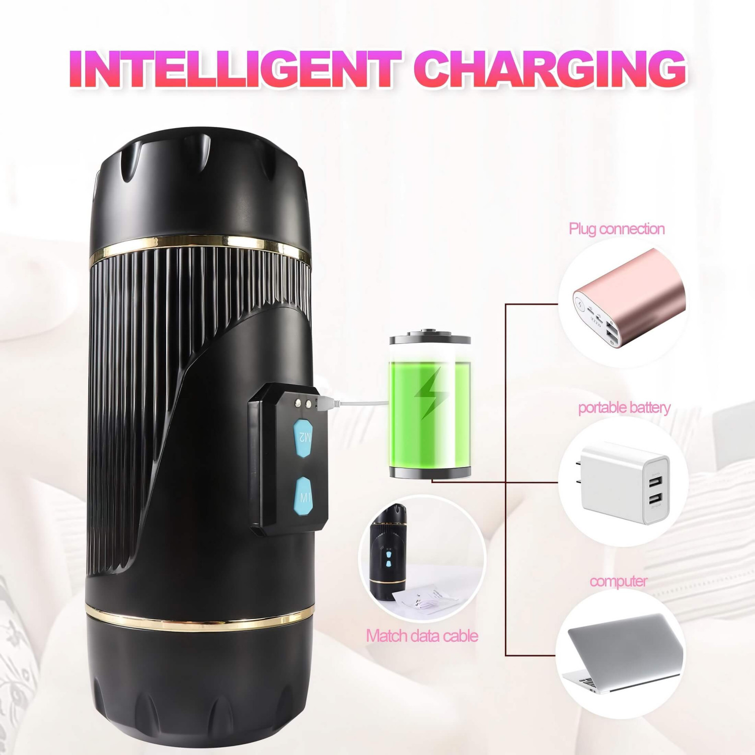 • Para encender los motores de vibración, mantén pulsados ambos botones (M1 y M2). Con pulsaciones cortas cambias los modos, y para apagarlo mantén pulsado de nuevo.
