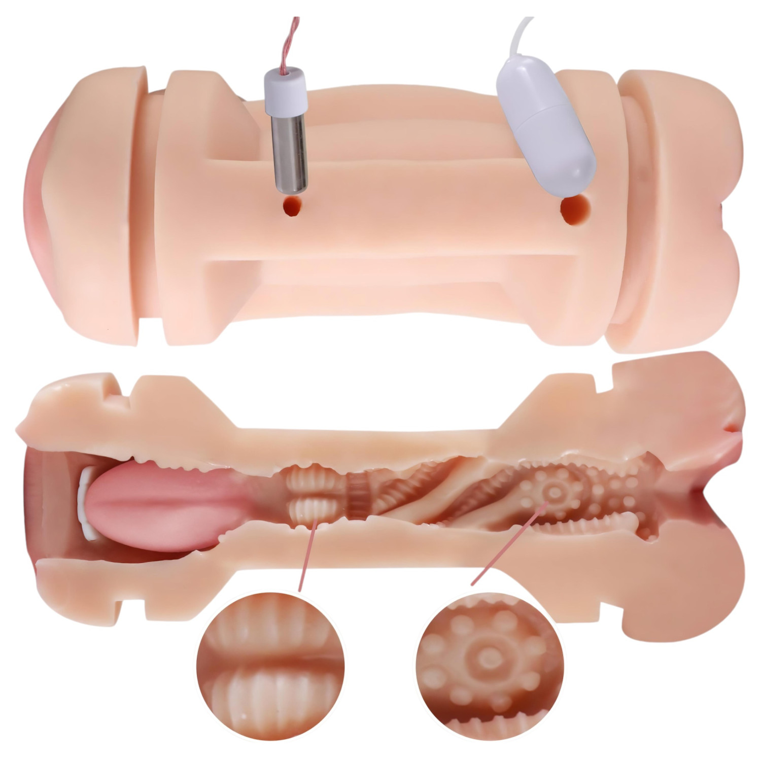 Boca y labios vaginales realistas, con una textura interna suave y estimulante para que disfrutes al máximo.