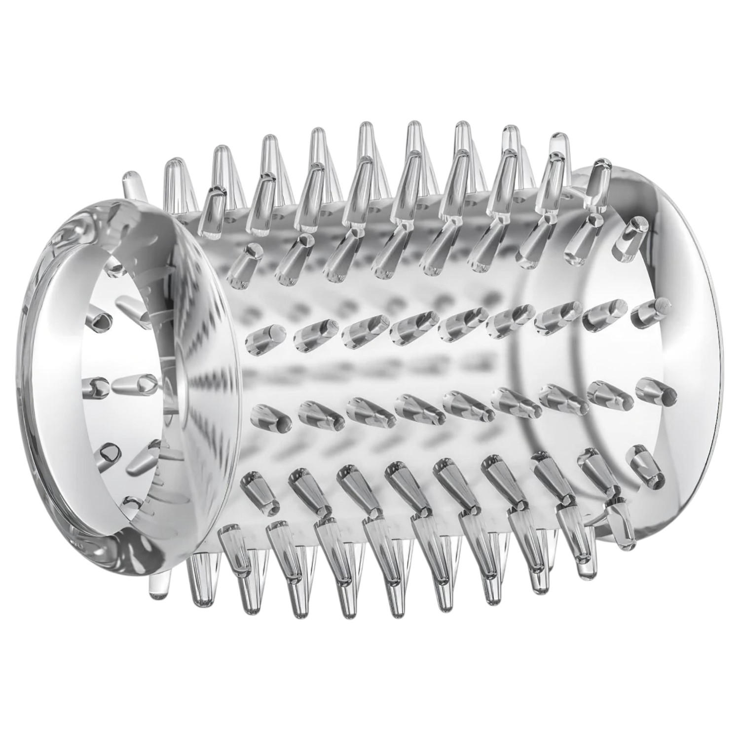 Es un complemento sencillo pero extremadamente eficaz que proporciona más placer para ambas partes. La manga elástica con textura espinosa ofrece una nueva experiencia texturizada que provoca una sensación excitante en las paredes vaginales o anales. Puedes usarlo en tu propio pene o incluso en tu dildo favorito, ya que se coloca fácilmente y permanece en su lugar durante todo el acto. Un accesorio universal que realza los encuentros o la masturbación.