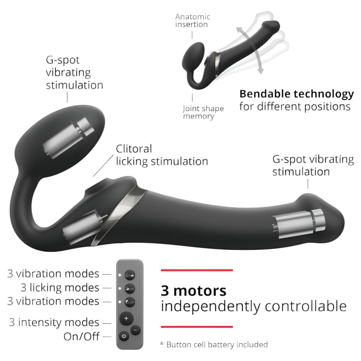 ¡Descubre el máximo placer con el Strap-On-Me M, el vibrador sin tirantes que se coloca directamente!