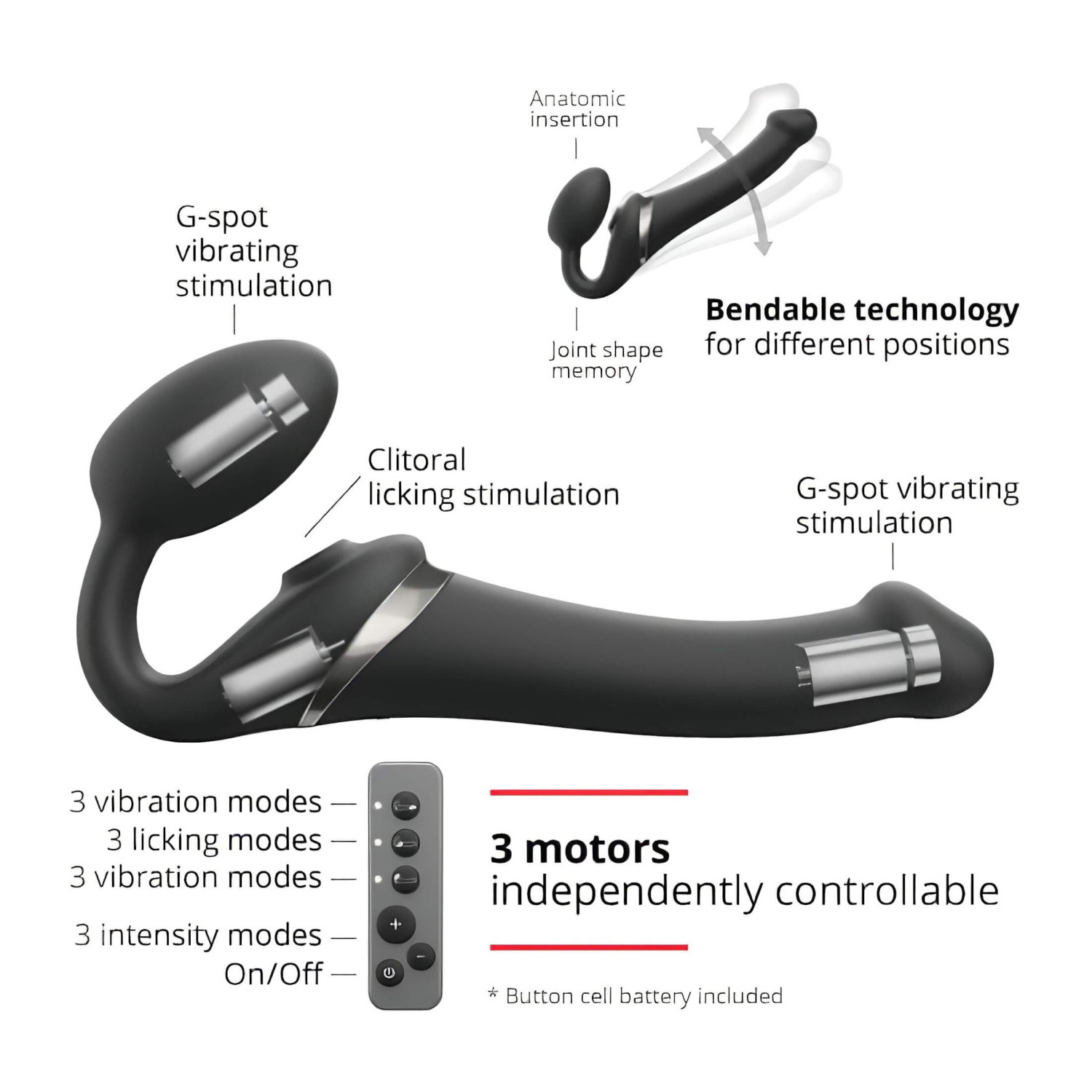 Este vibrador premium de tres motores, tipo strap-on sin arnés, lleva el placer a otro nivel con su estimulador de clítoris por ondas de aire - ¡y ambos vais a disfrutar como nunca!