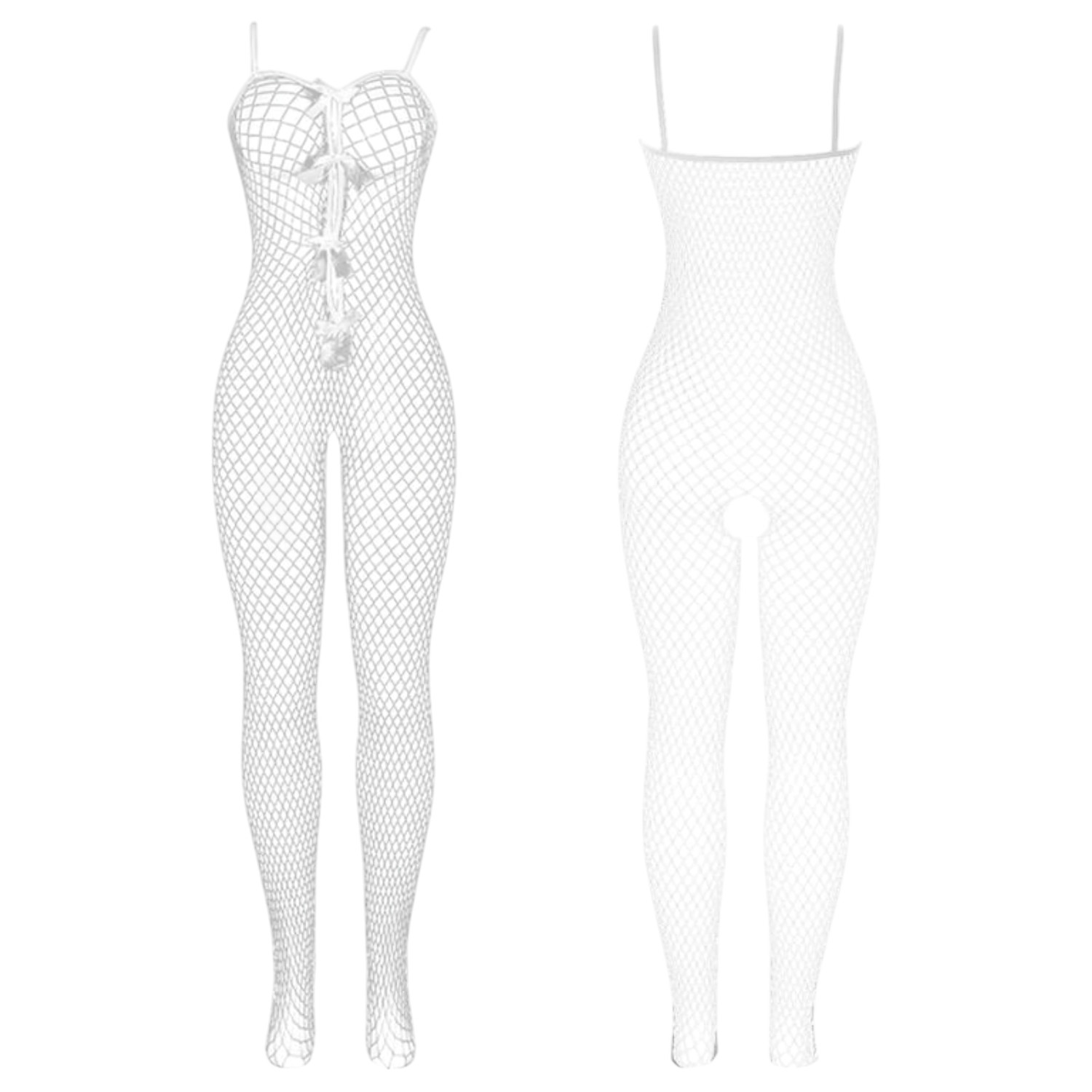 Bodystocking de red con entrepierna abierta y detalles de lazo: una prenda elegante y atrevida para momentos íntimos.